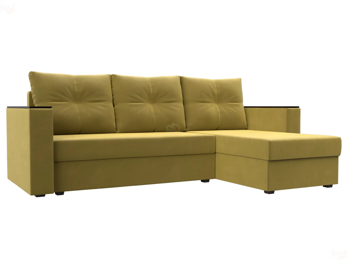 Угловой диван «Атланта без стола» представляет собой бюджетный вариант современного раскладного дивана-кровати с интересным дизайном и прочным каркасом из ДСП, ЛДСП, бруса и фанеры. Три большие мягкие съемные подушки дополняют спинку изделия, а прямые деревянные подлокотники обеспечат удобство и комфорт, а также могут выполнять роль столиков. Под сиденьем расположены вместительные ящики для белья. Устойчивость и надежность конструкции обеспечивают пластиковые крепкие ножки. Угловой диван «Атланта без стола» прекрасно впишется в интерьер как жилой комнаты, так и офиса. В качестве варианта для сна модель «Атланта без стола» тоже отлично подойдет. При раскладывании длина автоматически станет шириной, что позволит свободно лечь двоим. Широкий выбор расцветок позволяет подобрать оптимальный вариант под стилистику помещения. -