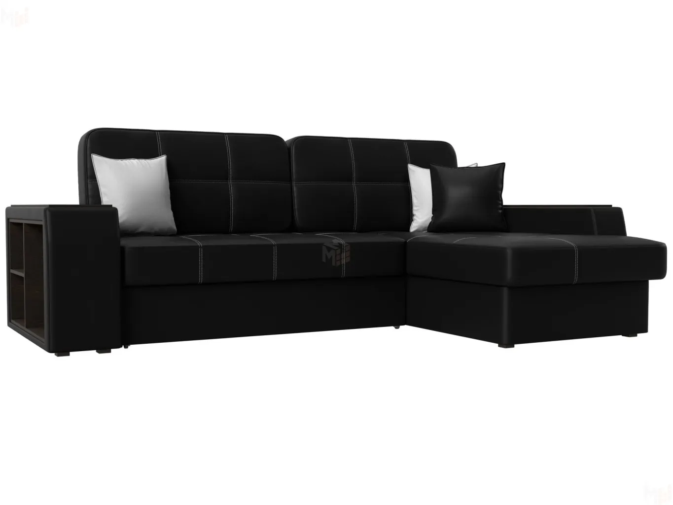 Шикарный угловой диван Брюссель удобен и функционален в использовании. Подлокотники выполняют роль мини-столиков. Одна из боковин дополнена книжными полками, декорированным «под дерево». Под длинной боковиной расположена ниша для белья. Изделие оснащено удобным механизмом трансформации в двуспальную кровать. -