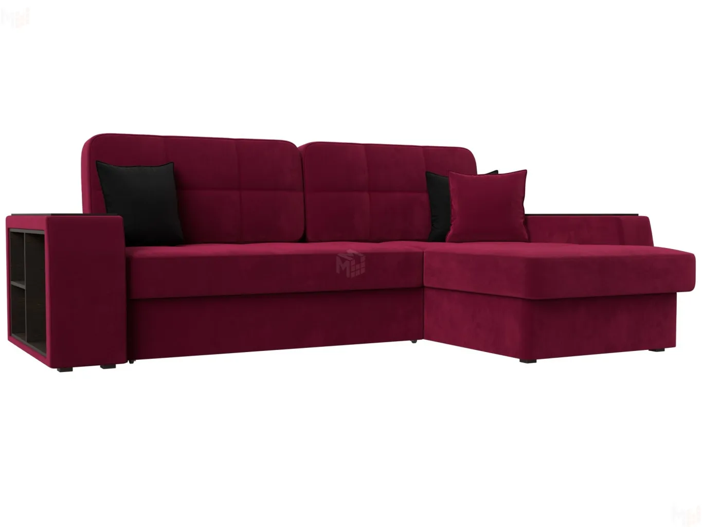 Шикарный угловой диван Брюссель удобен и функционален в использовании. Подлокотники выполняют роль мини-столиков. Одна из боковин дополнена книжными полками, декорированным «под дерево». Под длинной боковиной расположена ниша для белья. Изделие оснащено удобным механизмом трансформации в двуспальную кровать. -