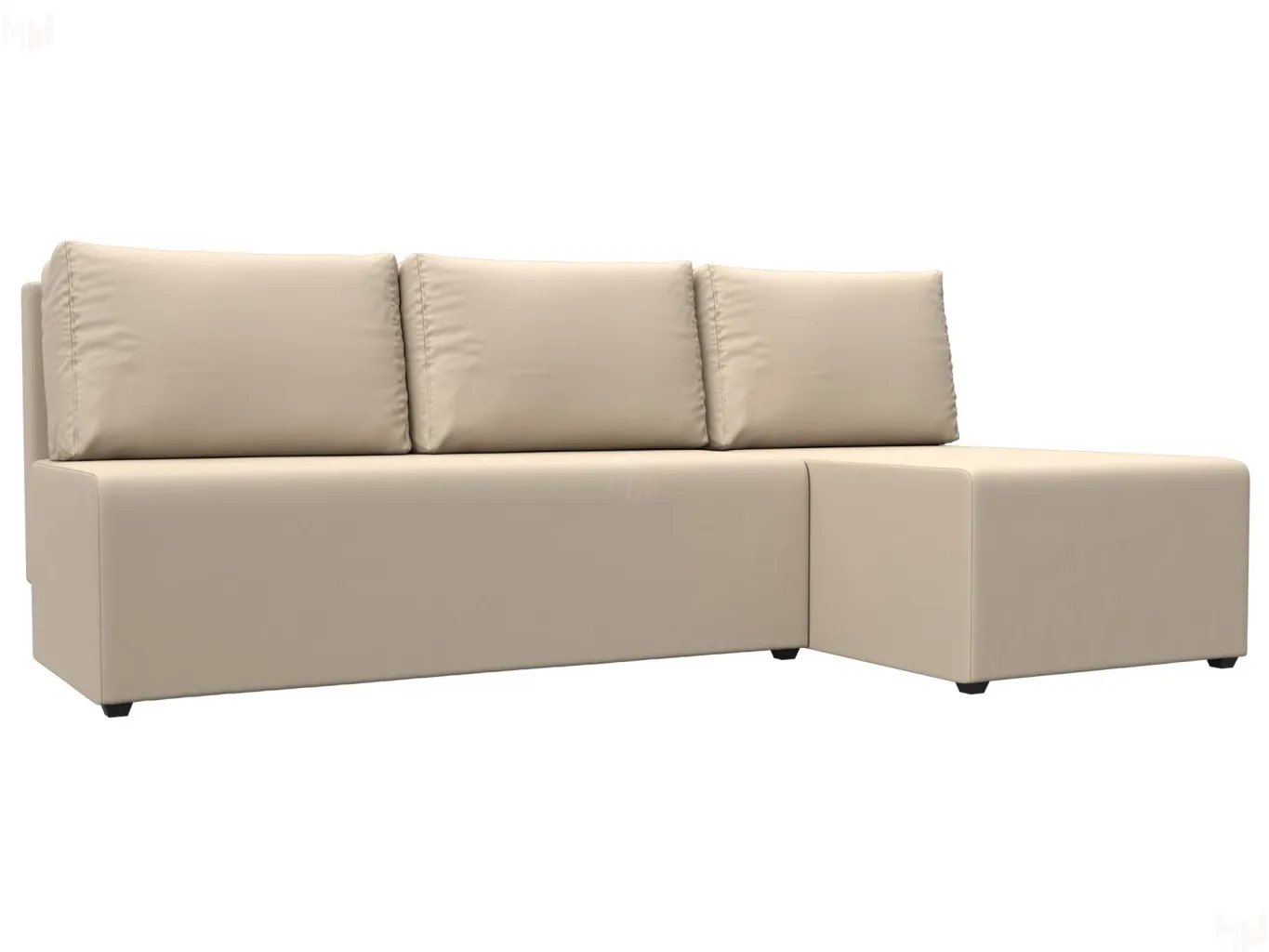 Поло – угловой диван со спальным местом без подлокотников. Спинка дополнена тремя мягкими подушками. Уголовой диван может быть изготовлен с углом с правой или левой стороны.