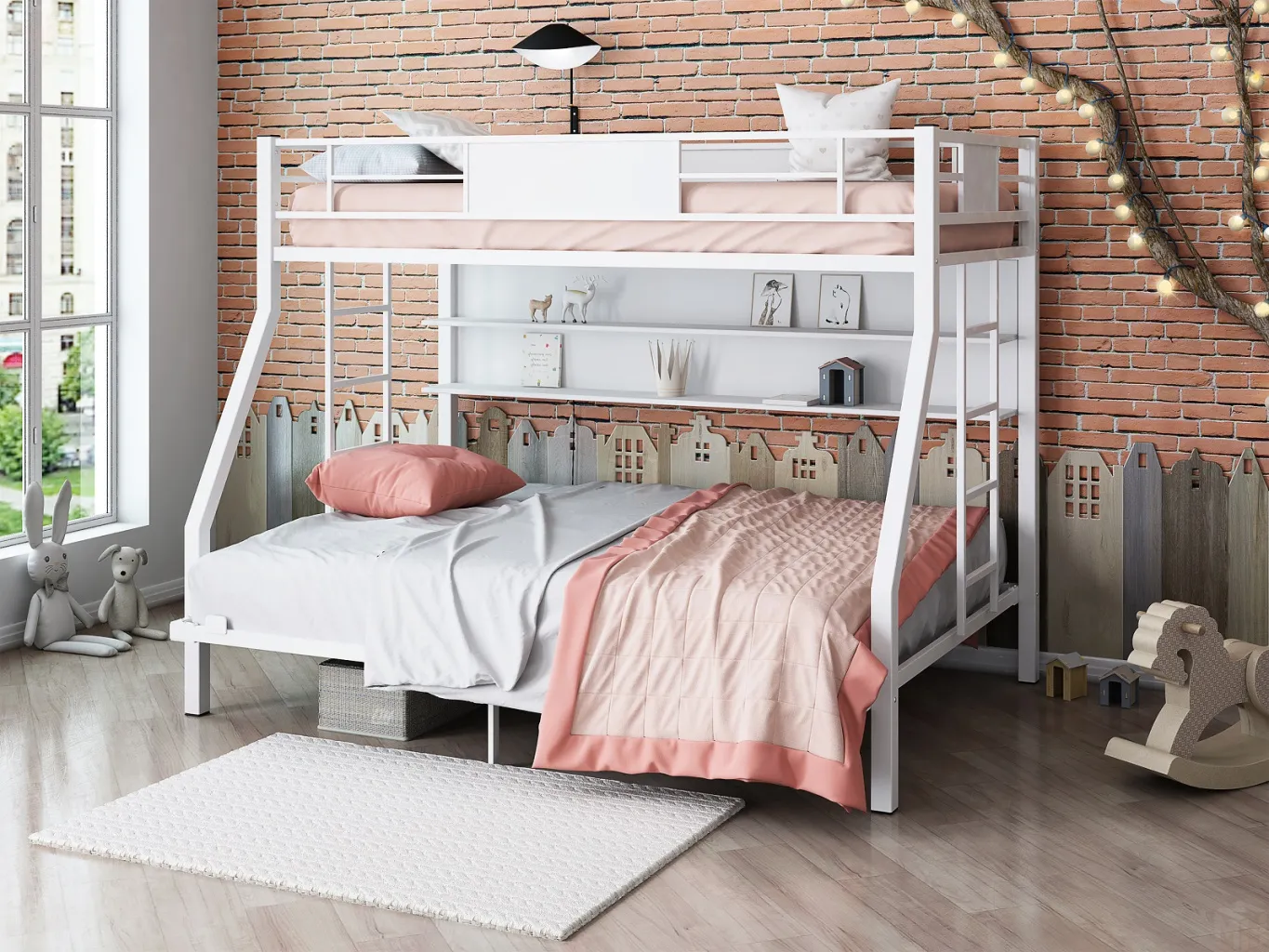 Металлическая двухъярусная кровать Гранада от производителя "Формула мебели" способна выдерживать нагрузку до 180 кг (на одно спальное место), что делает ее подходящей как для детей, так и для взрослых. Конструкция кровати предусматривает спальные места разных размеров. В отличие от кроватей из ЛДСП выглядит менее громоздкой. В комплект входят две лестницы по бокам кровати.