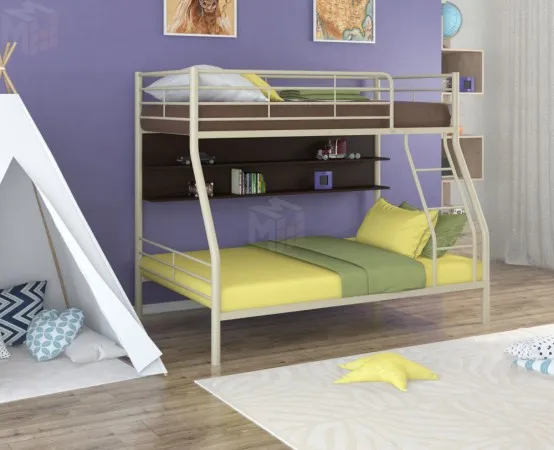 Металлическая двухъярусная кровать Гранада - 2 П с полками от производителя "Формула мебели" способна выдерживать нагрузку до 180 кг (на одно спальное место), что делает ее подходящей как для детей, так и для взрослых. Конструкция кровати предусматривает спальные места разных размеров. В отличие от кроватей из ЛДСП выглядит менее громоздкой. В комплект входит прочная лестница.