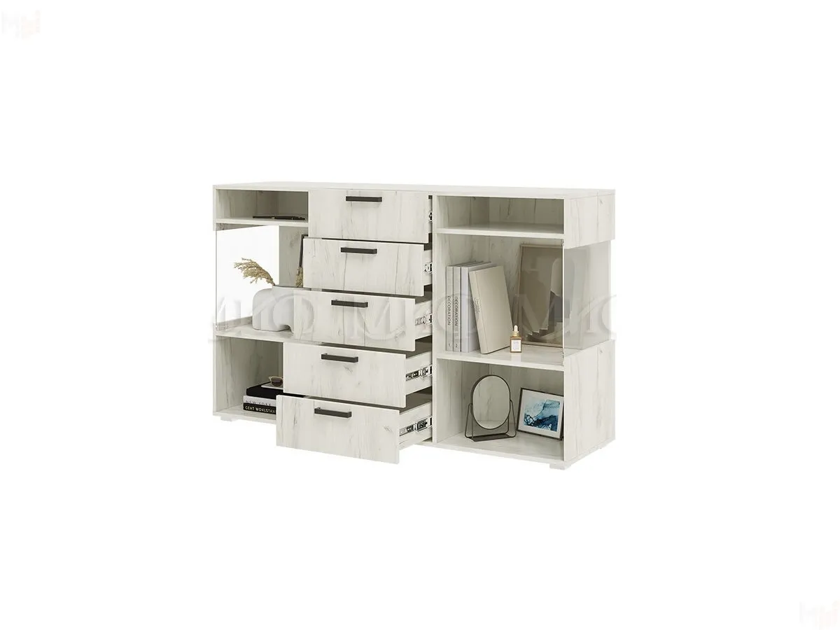 Мебель выполнена из ЛДСП 16 мм цвета Дуб крафт белый.