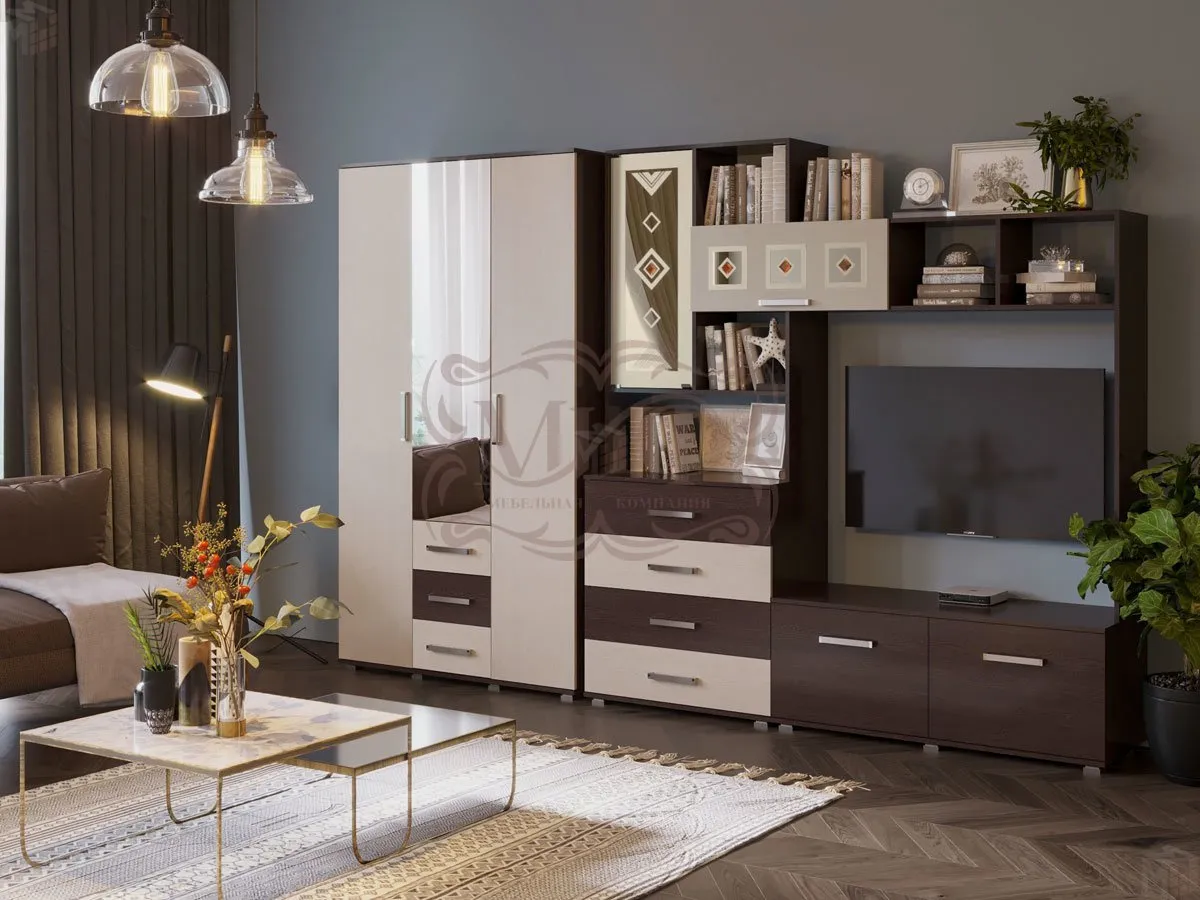 Композиция состоит из двух модулей: центральная секция (ширина 2000 мм) и шкаф 3-х дверный (ширина 1200 мм).