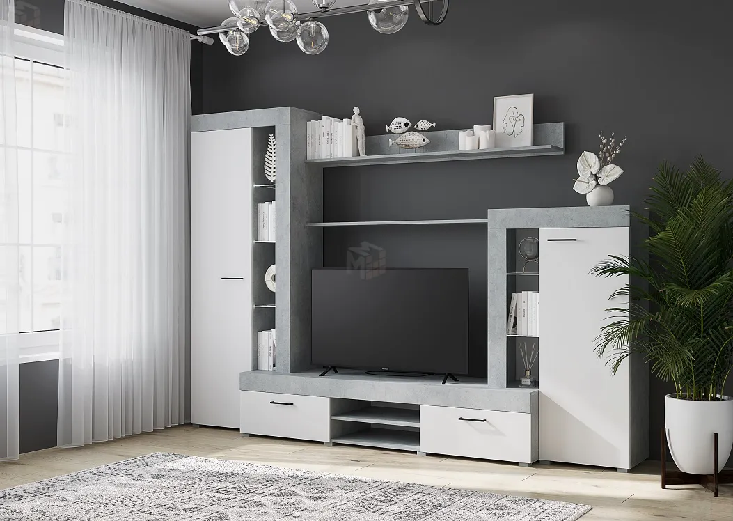 Гостиная Дельта ЛДСП (Белый/бетон)