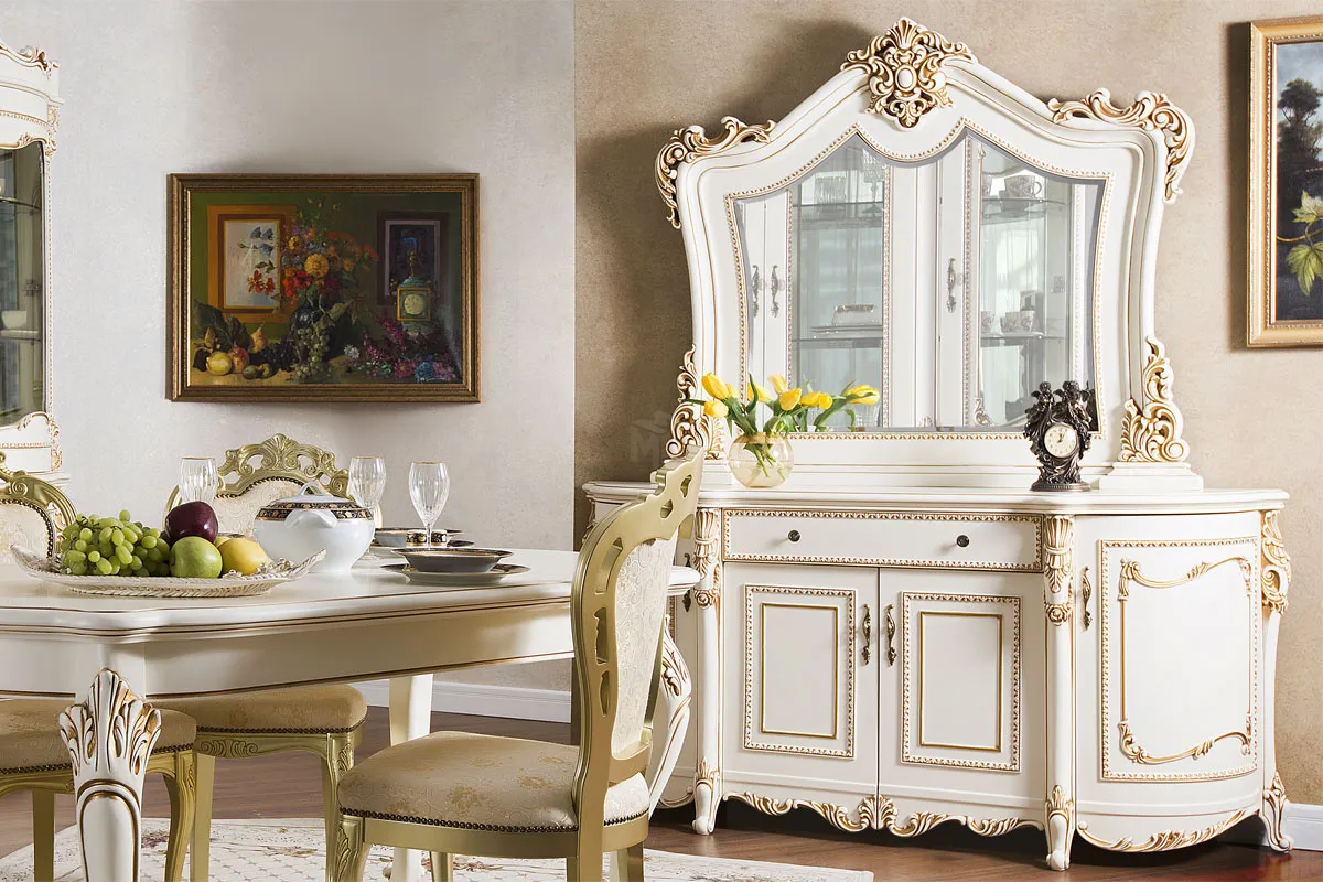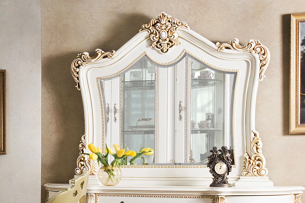 1. Цвет - крем: сервант 1.9 и 2.3, комод. Крем/глянец: сервант 2.3