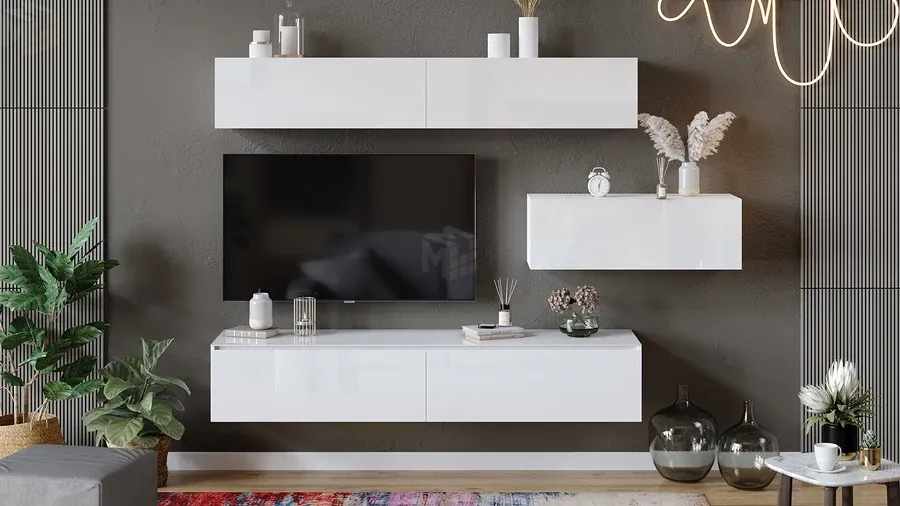 Гостиная Глосс №5 - ГН 319.05 Белый глянец, Стекло Белый глянец