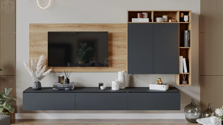 Тумба ТВ Глосс - ТД 319.03.12 Яблоня Беллуно, Стекло Графит матовый
