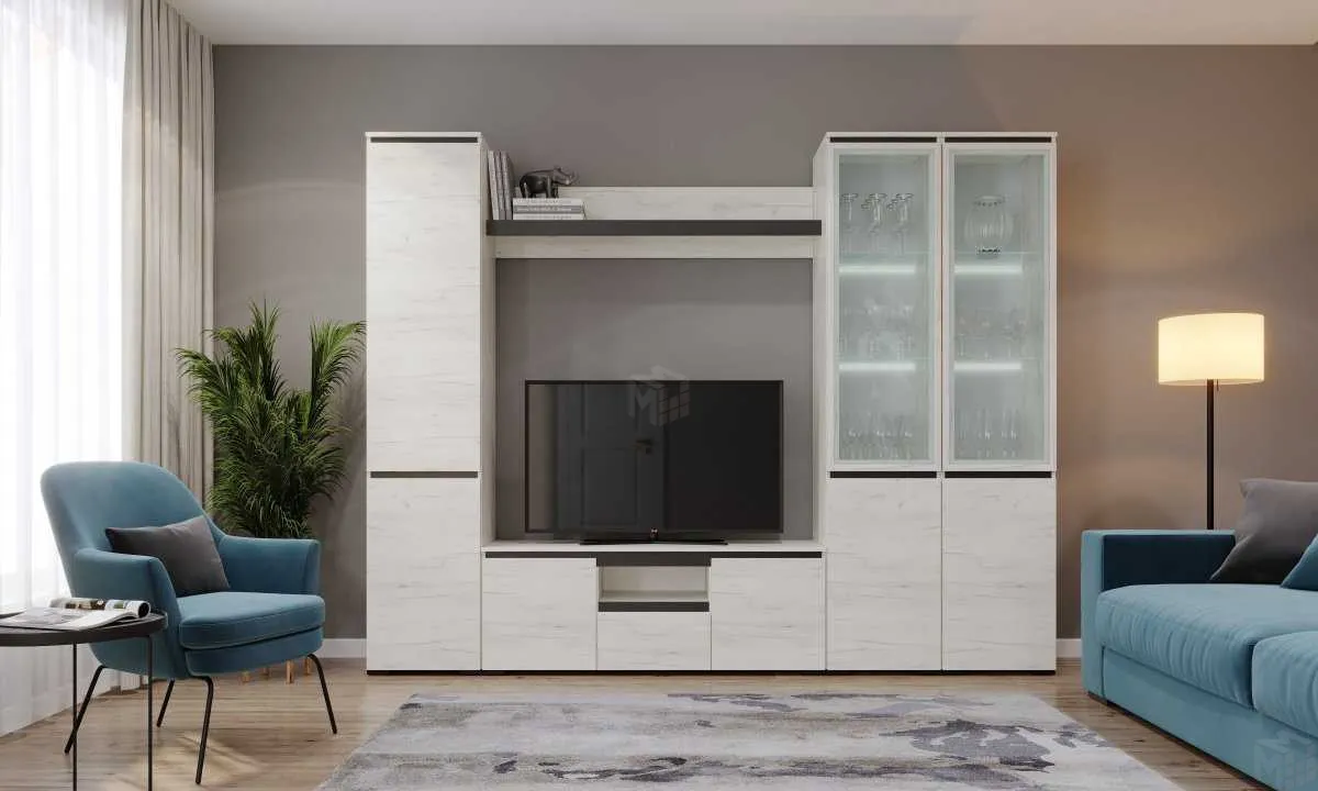 Гостиная ГРЕТТА Дуб Крафт белый - Антрацит №1
