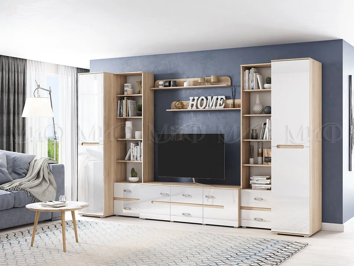Каркас выполнен из ЛДСП Дуб сонома, фасады МДФ Белый глянец.