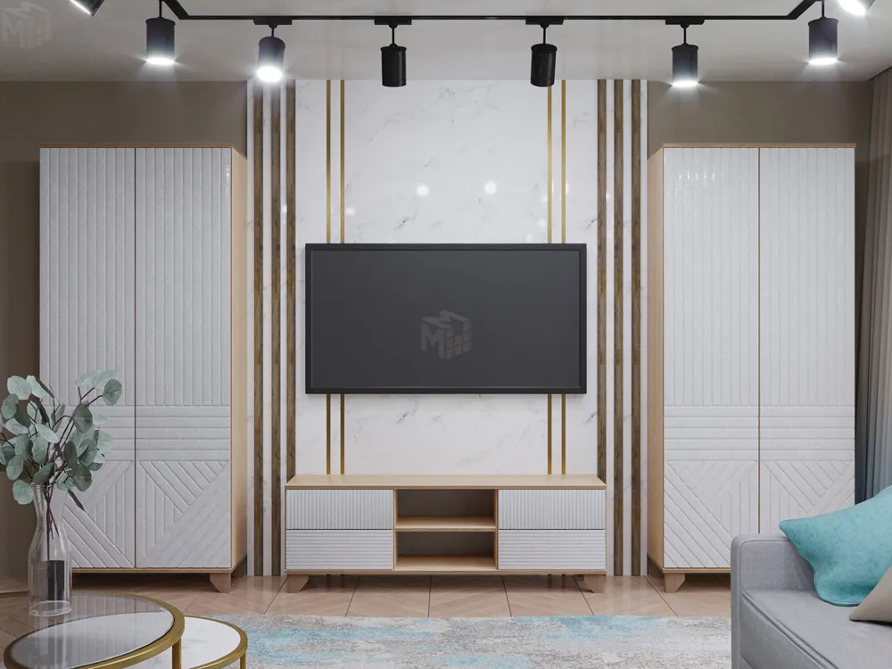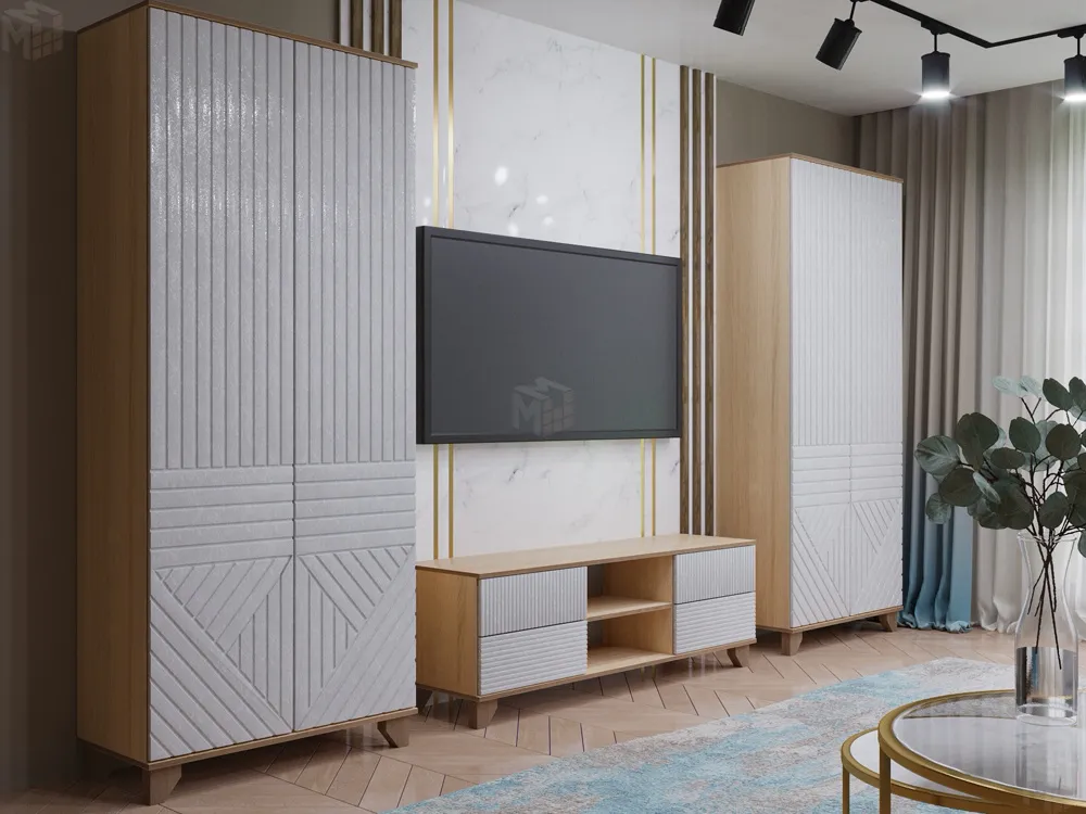 Указана стоимость комплекта мебели из двух шкафов и тумбы под ТВ с нишей.