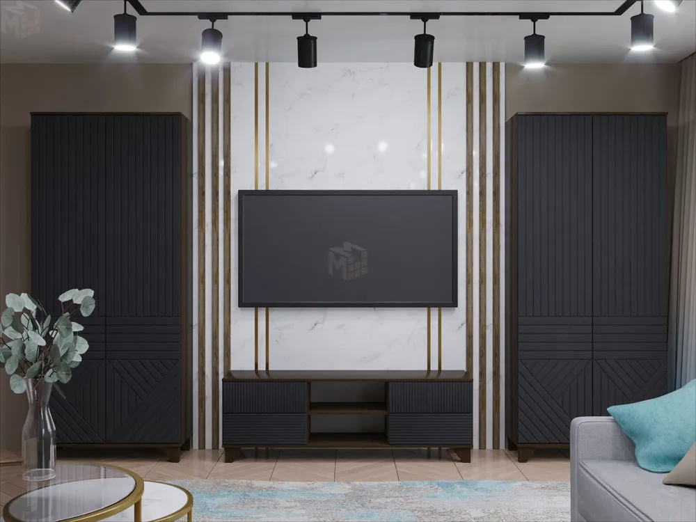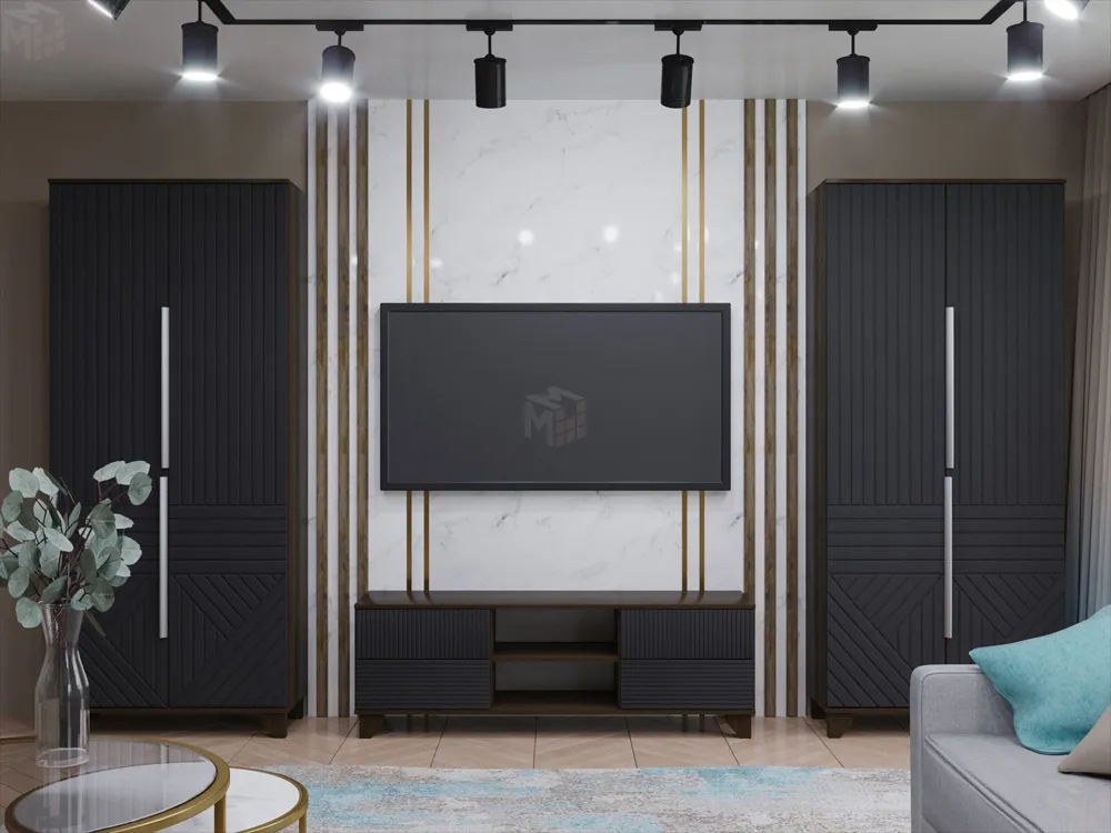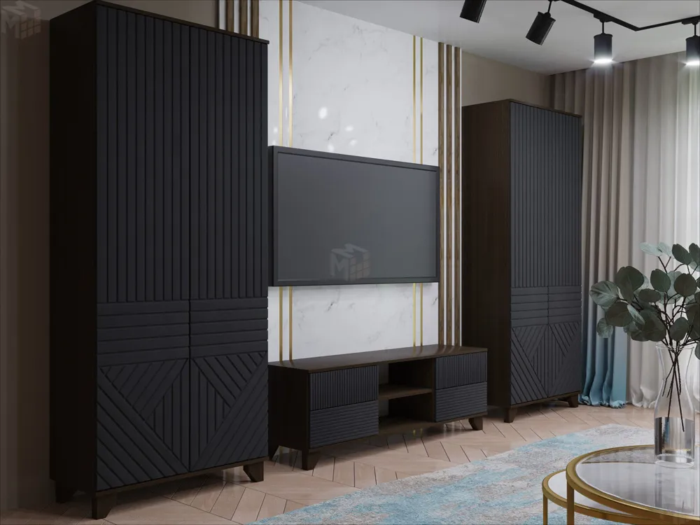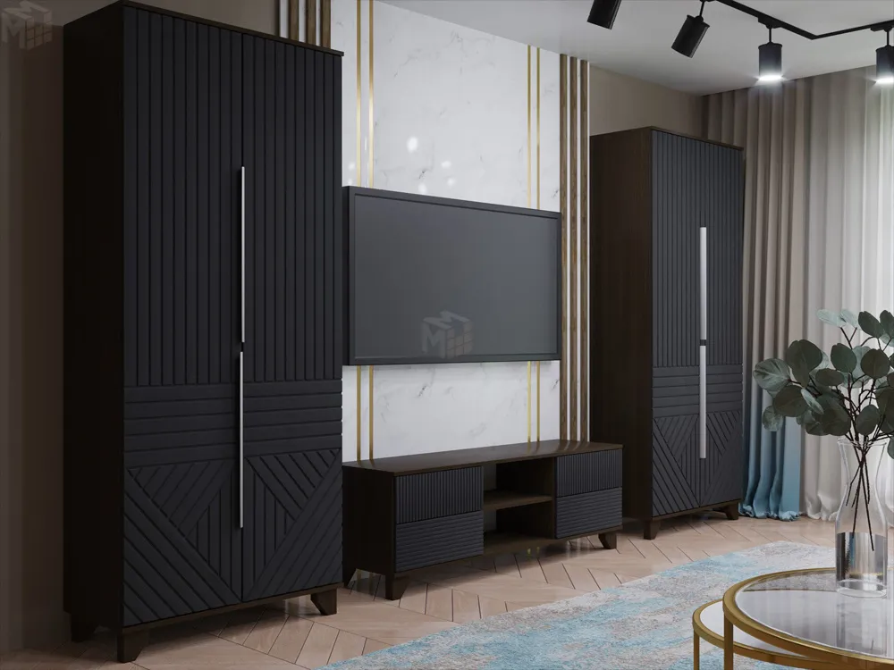 Указана стоимость комплекта мебели из двух шкафов и тумбы под ТВ с нишей.