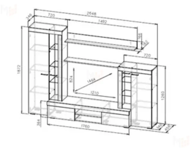 ширина 2648 мм, глубина 456 мм, высота 1872 мм