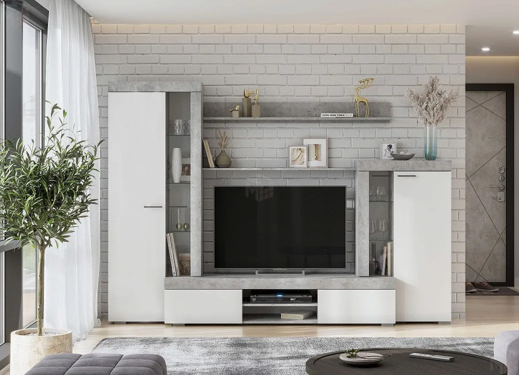 Стеклостворки: составные ЛДСП «Цемент Светлый» + прозрачное стекло 4 мм.