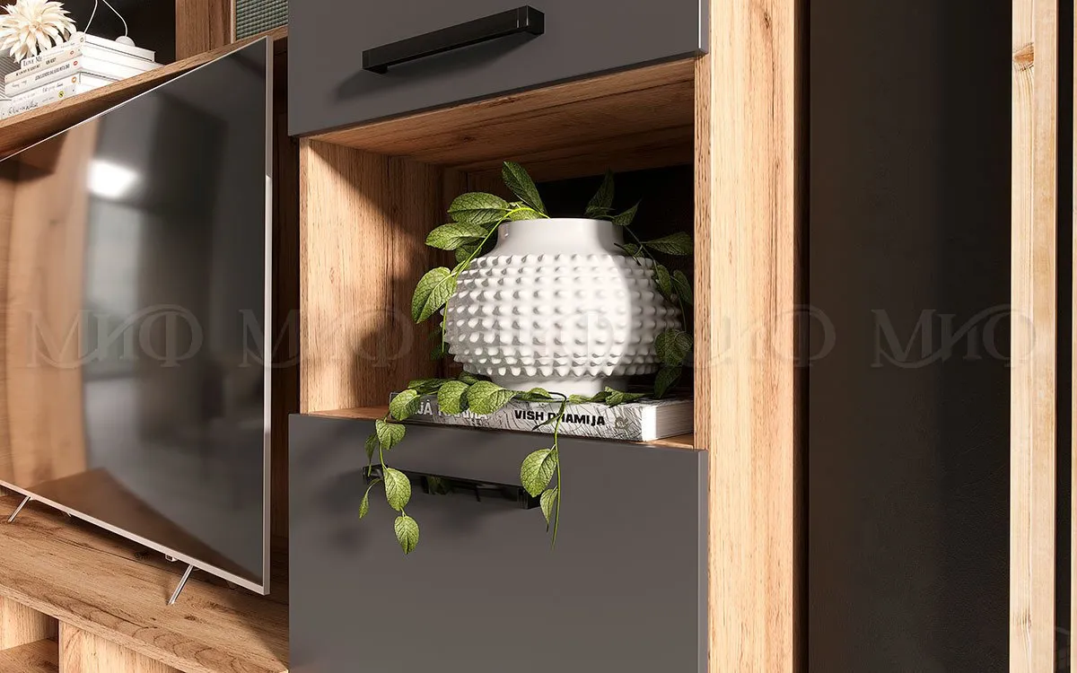 Гостиная выполнена в цвете дуб крафт, фасады МДФ Графит.
