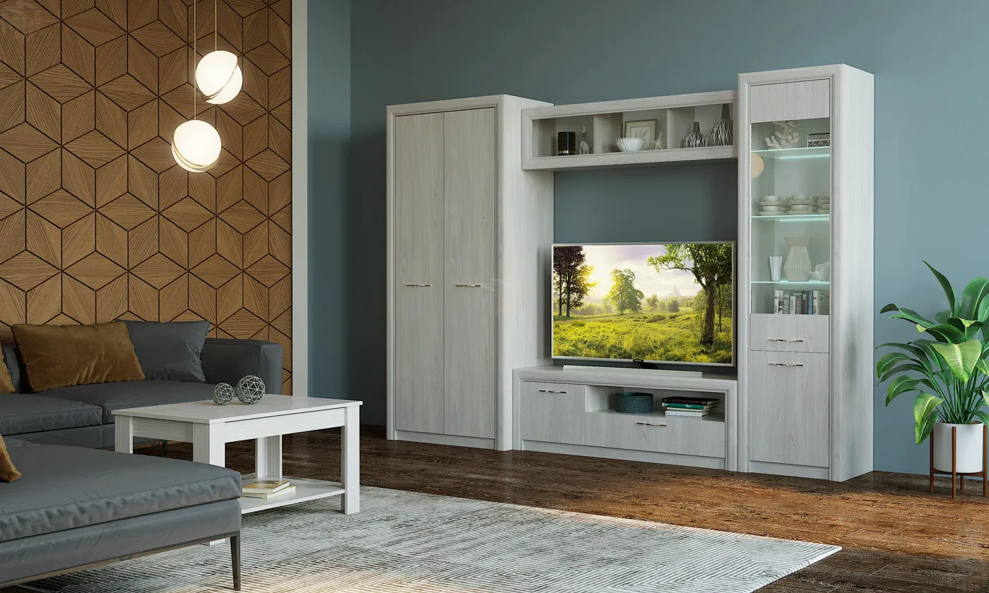 На фото представлена гостиная «ОКТАВА» в следующем цветовом решении: