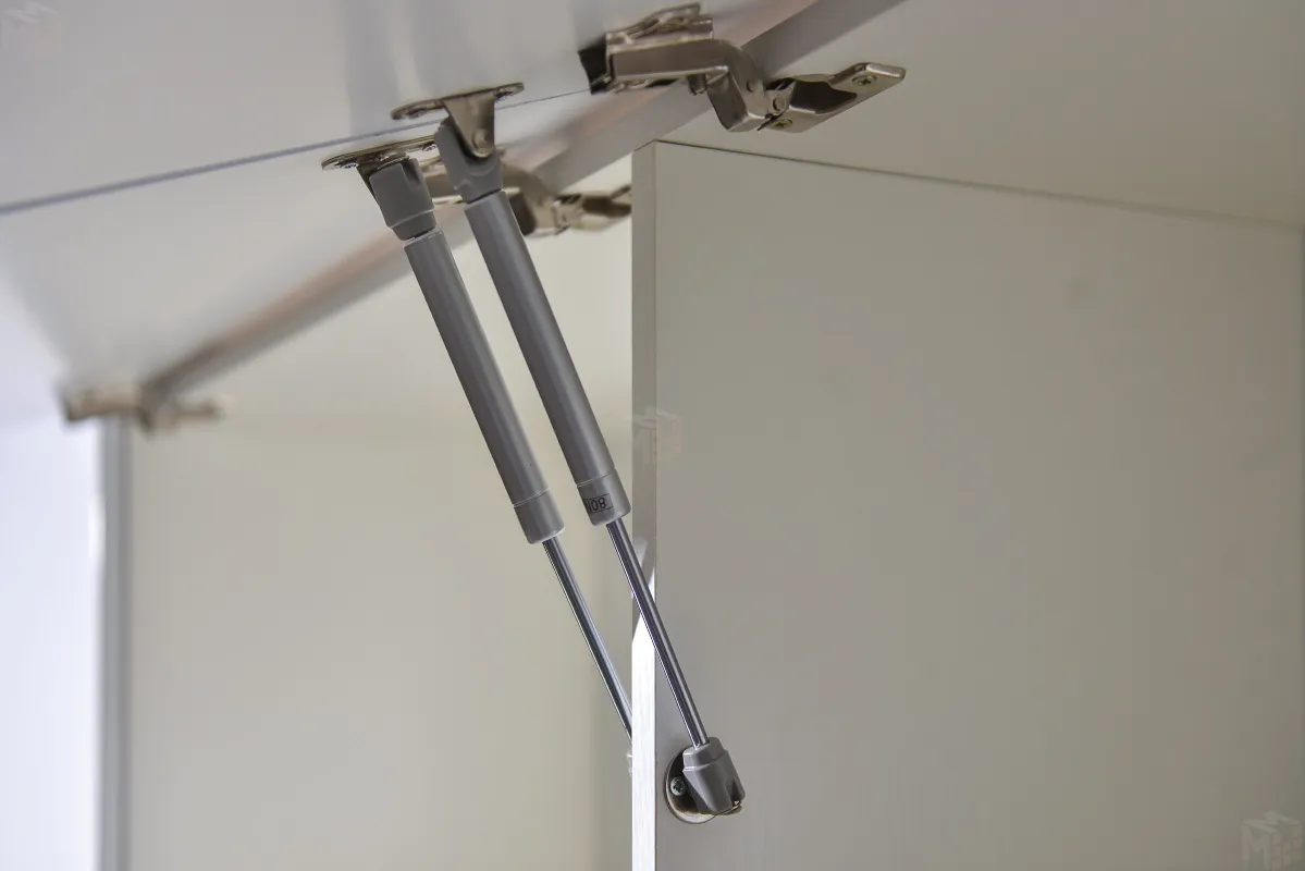 Верхние горизонтальные откидные двери на газлифтах открываются за край фасада (без механизма Push). -