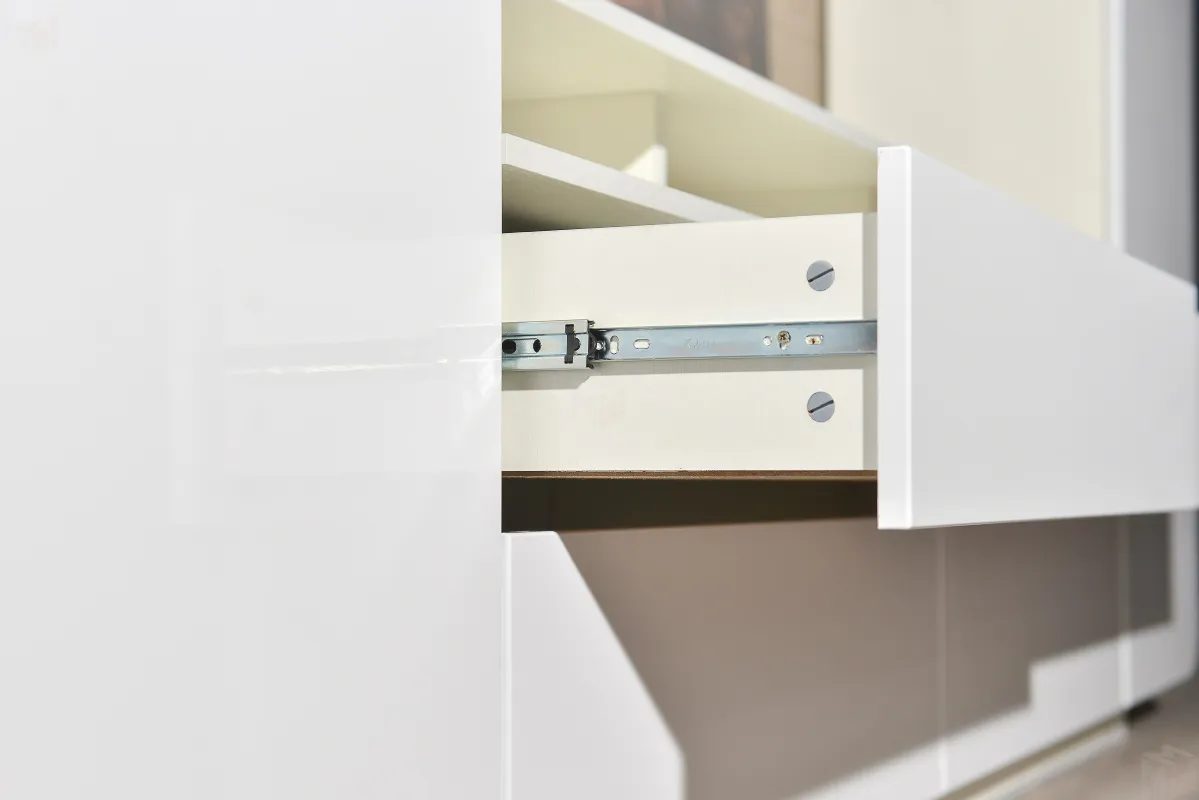 Распашные двери без доводчиков, для открывания используется механизм Push. Выкатные ящики на роликовых направляющих с механизмом Push.