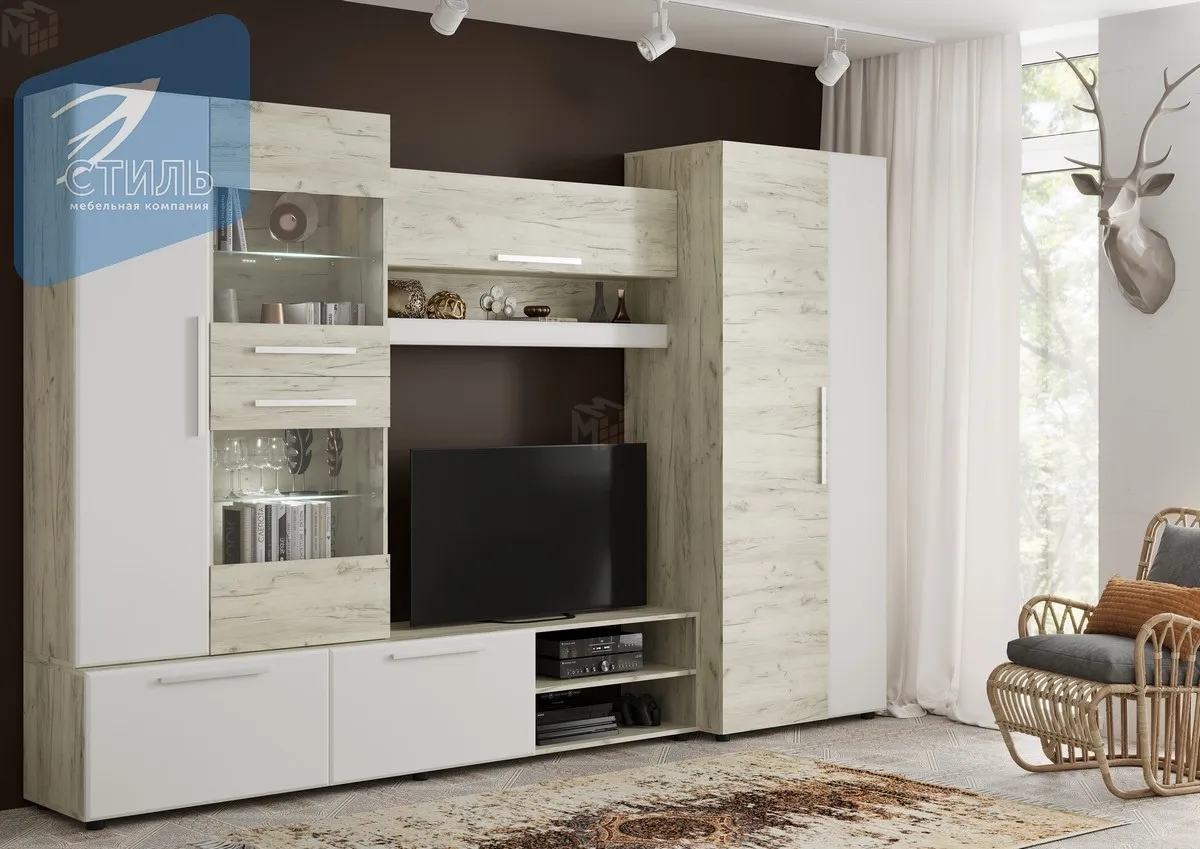 Гостиная Сафари (дуб крафт/белый софт)