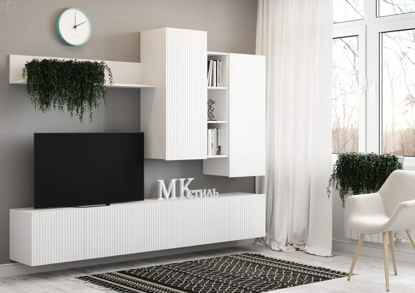 Гостиная Сканди (белый/белый глянец)