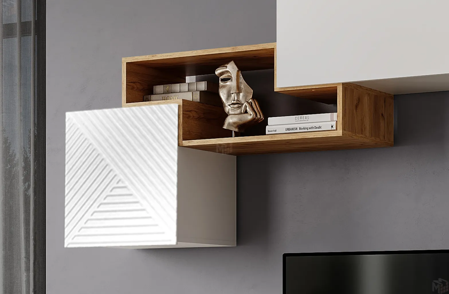 за счет смещения верхних подвесных модулей (габариты композиции из трёх модулей