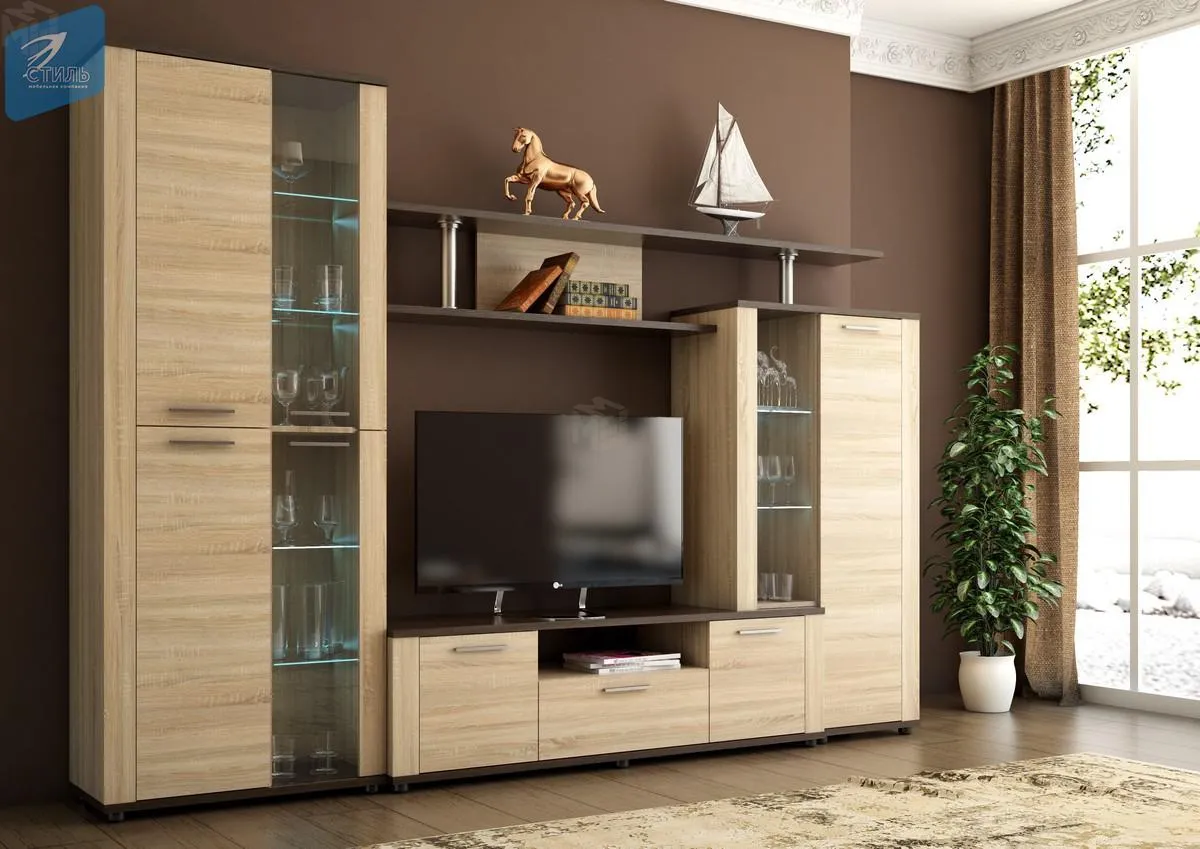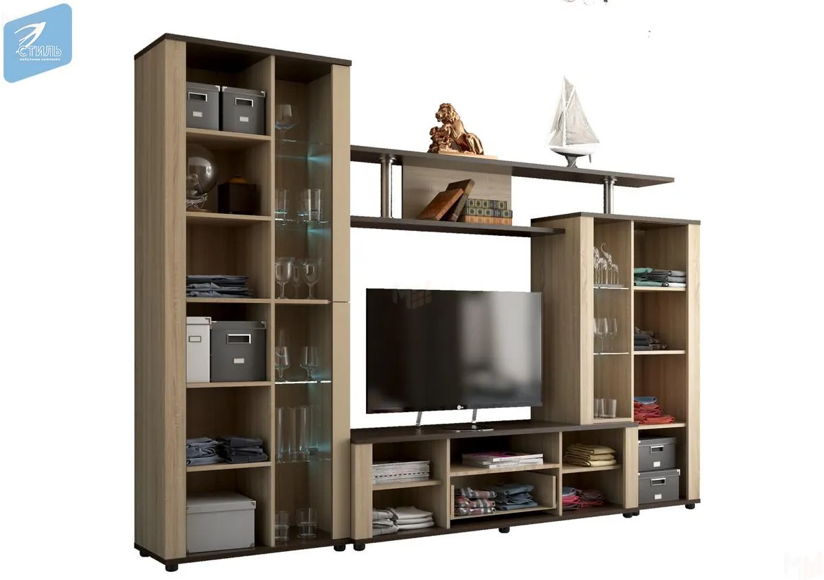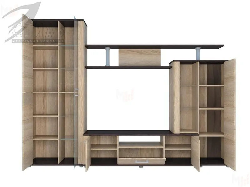 - Глубина полок центральной части гостиной 250 мм . Место под TV Д1210 х В900 мм.