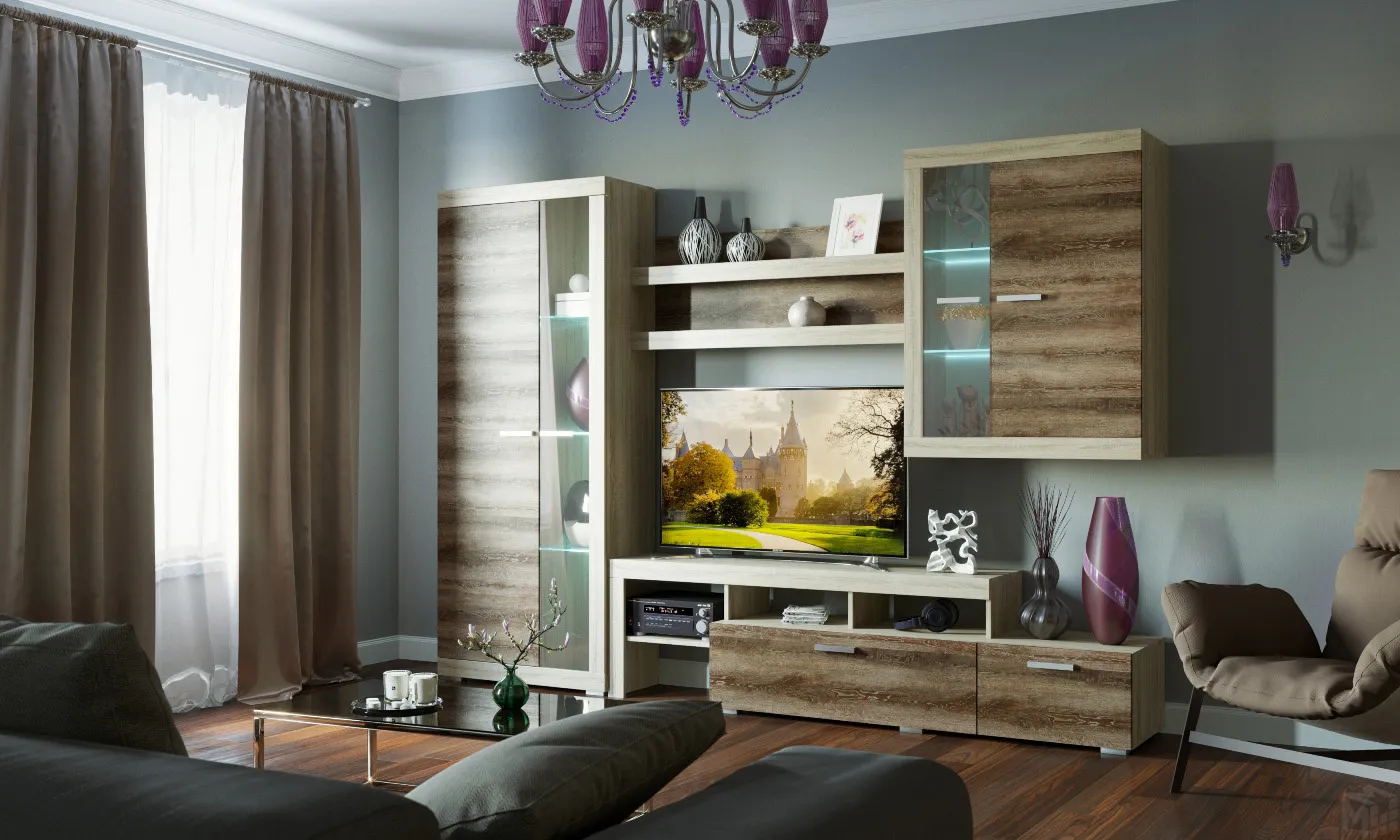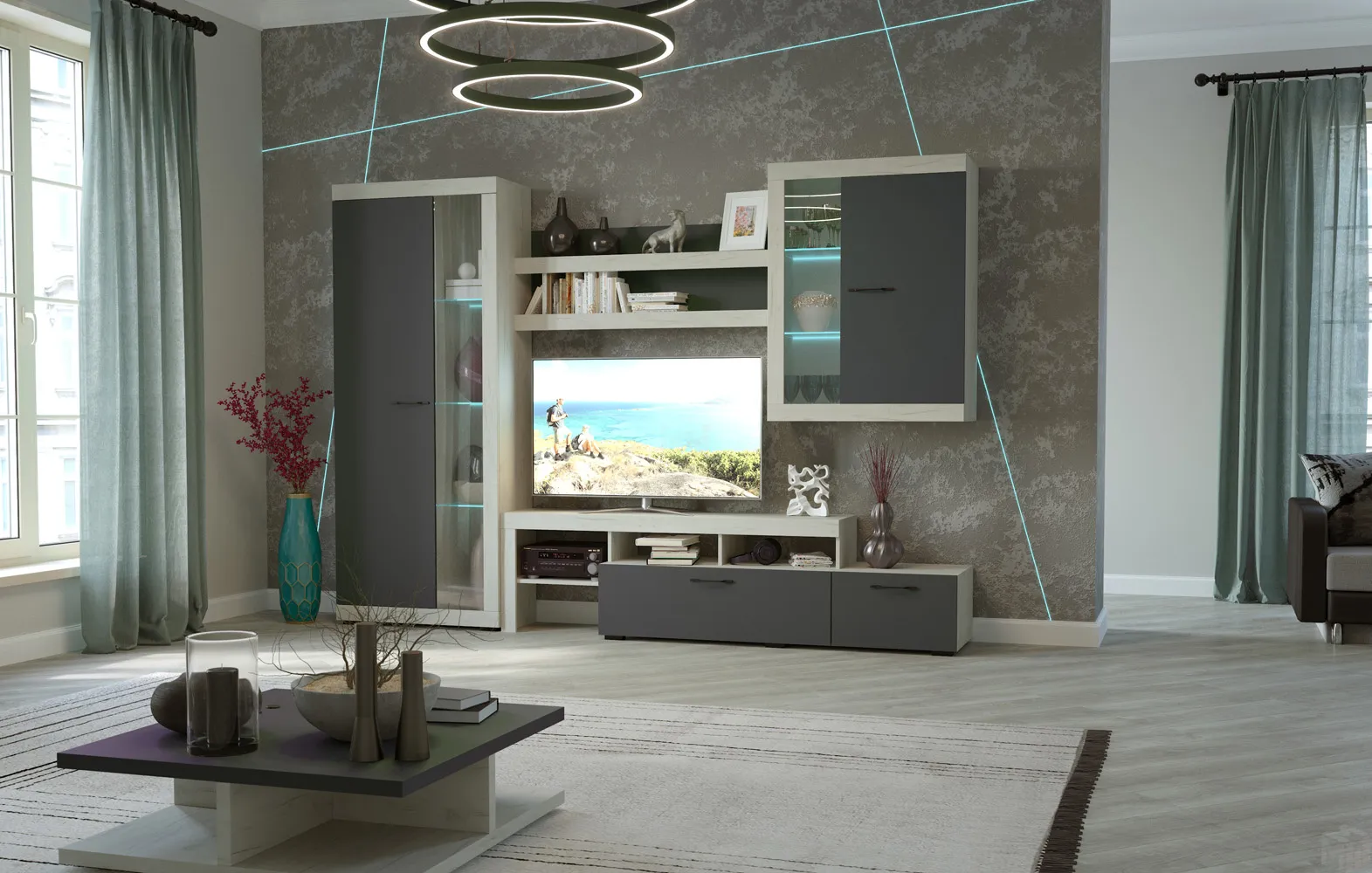 Цвет гостиной Дуб Сонома - Дуб Сакраменто, Дуб Крафт белый - Антрацит, Дуб Сонома - Белый глянец №1 -