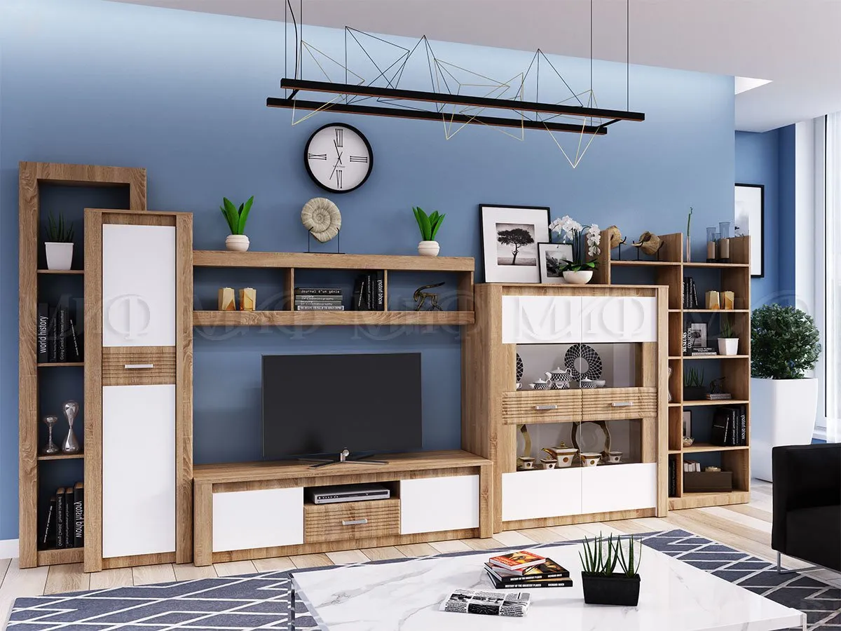 Каркас выполнен из ЛДСП Дуб сонома, фасады в рамке МДФ Дуб сонома, вставки белые. -
