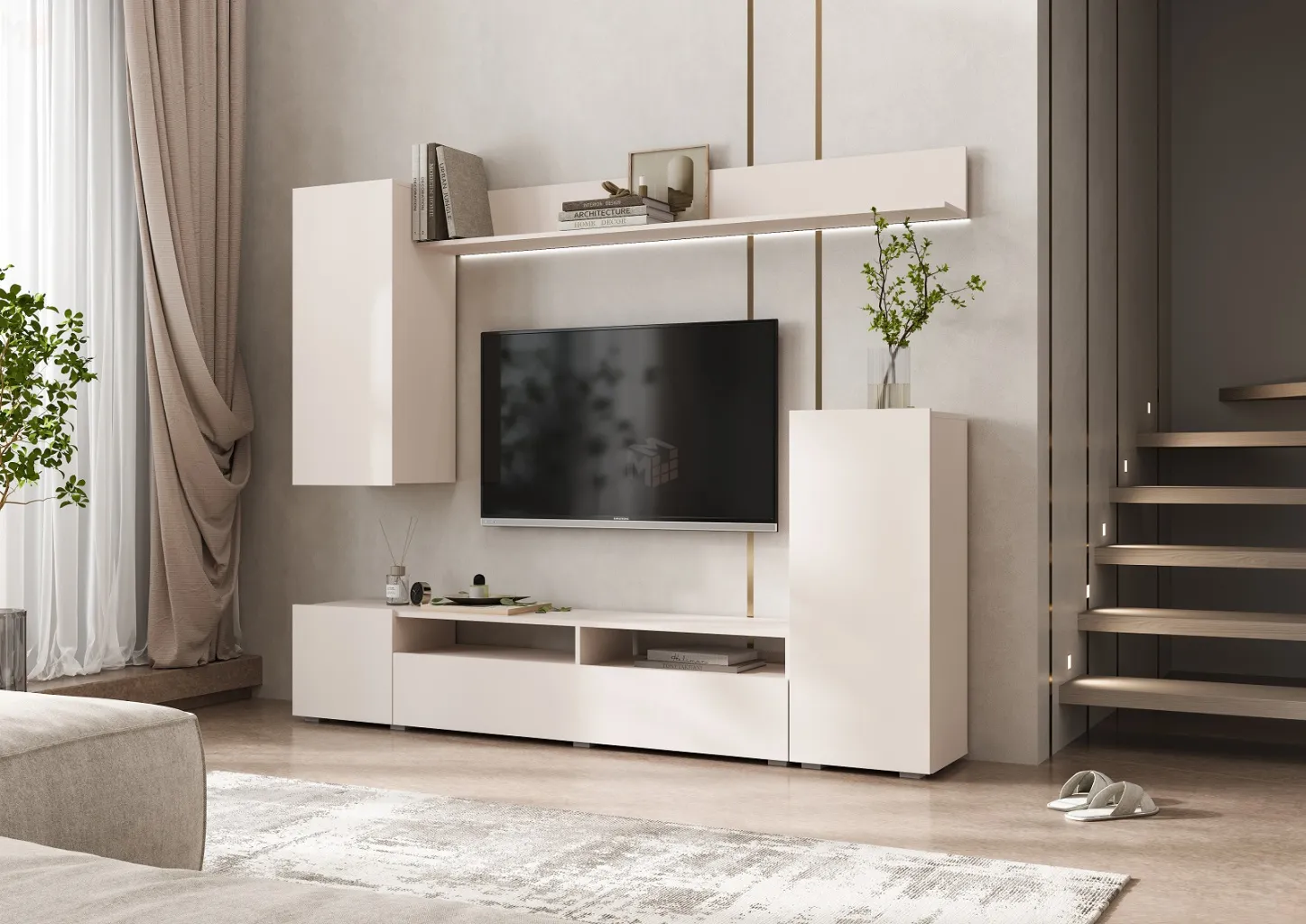 Корпус и фасады гостиной выполнены из ЛДСП Кашемир 16 мм.