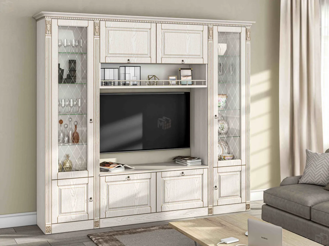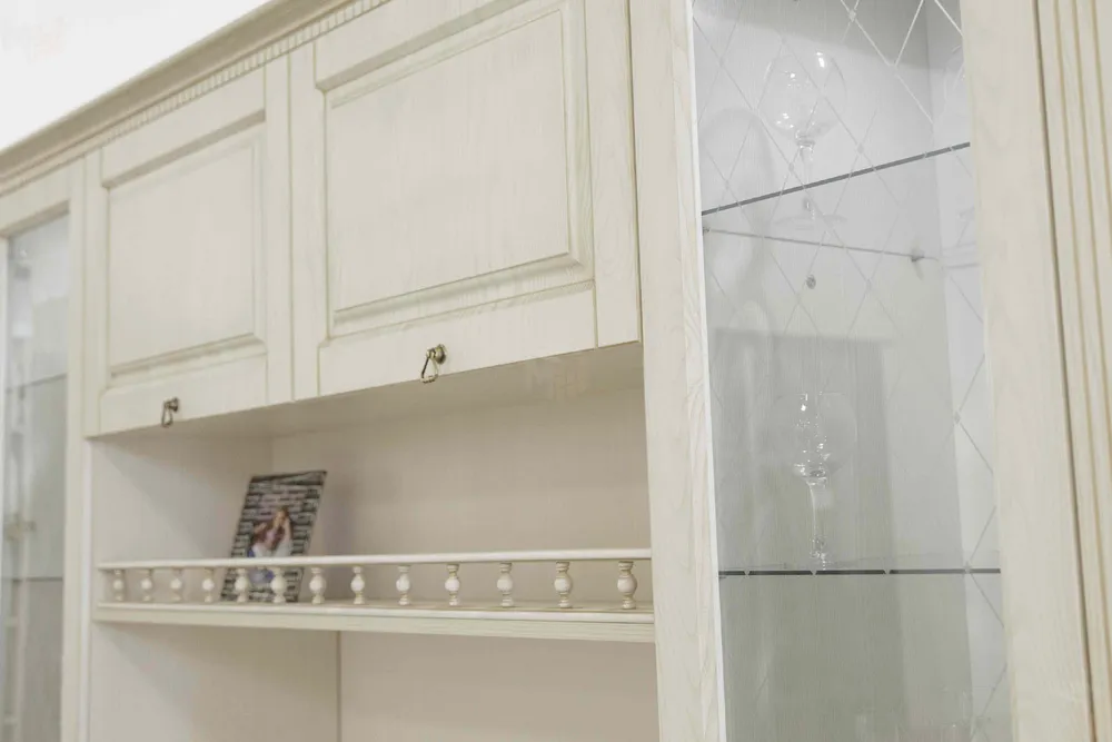 Белоснежная гостиная Вероника, с элегантной патиной, в совершенном классическом стиле, не громоздкая, но вместительная.