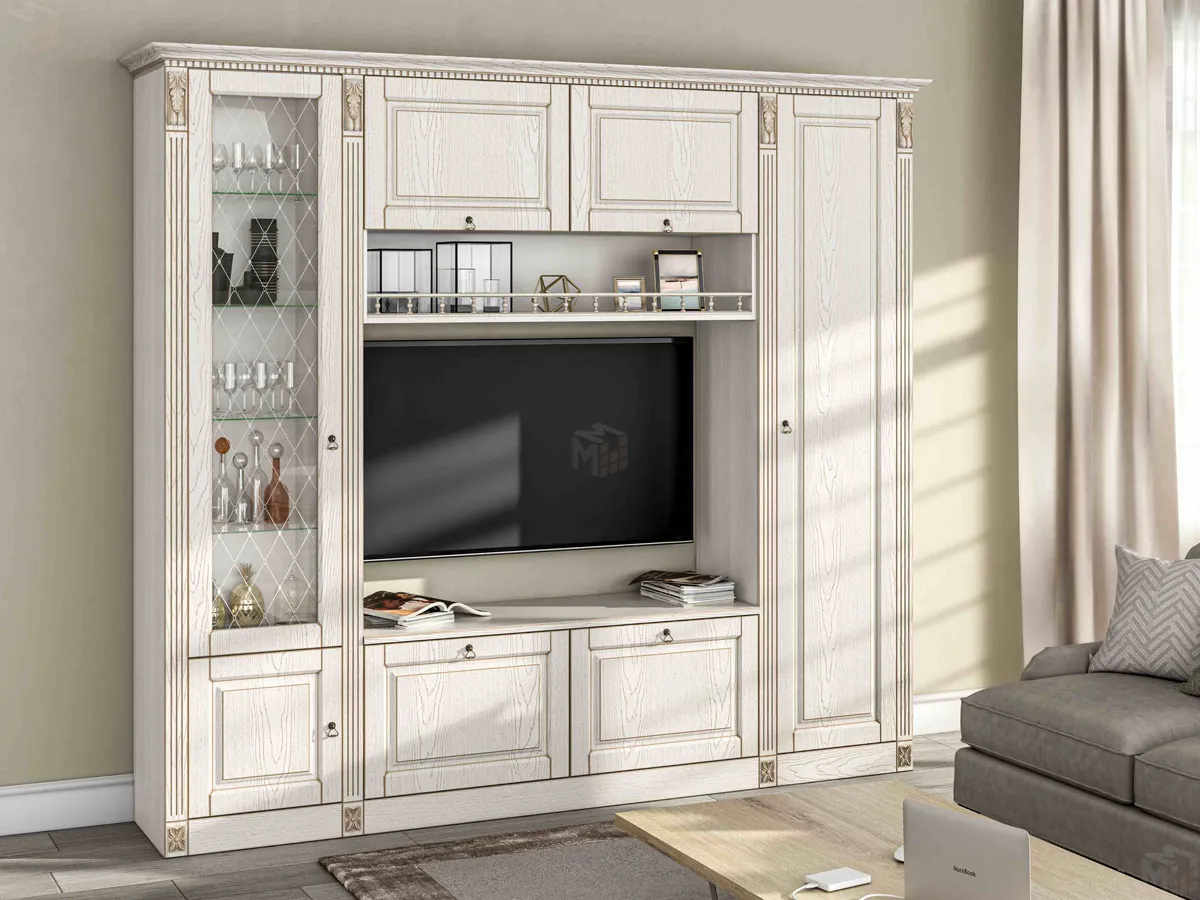 Белоснежная гостиная Вероника, с элегантной патиной, в совершенном классическом стиле, не громоздкая, но вместительная.