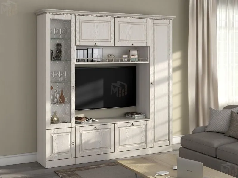 Белоснежная гостиная Вероника, с элегантной патиной, в совершенном классическом стиле, не громоздкая, но вместительная.