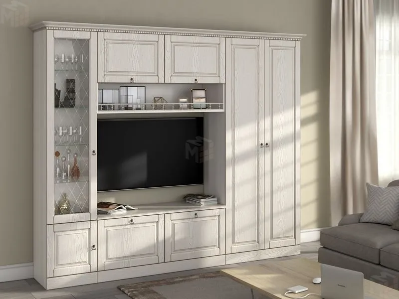 Белоснежная гостиная Вероника, с элегантной патиной, в совершенном классическом стиле, не громоздкая, но вместительная.
