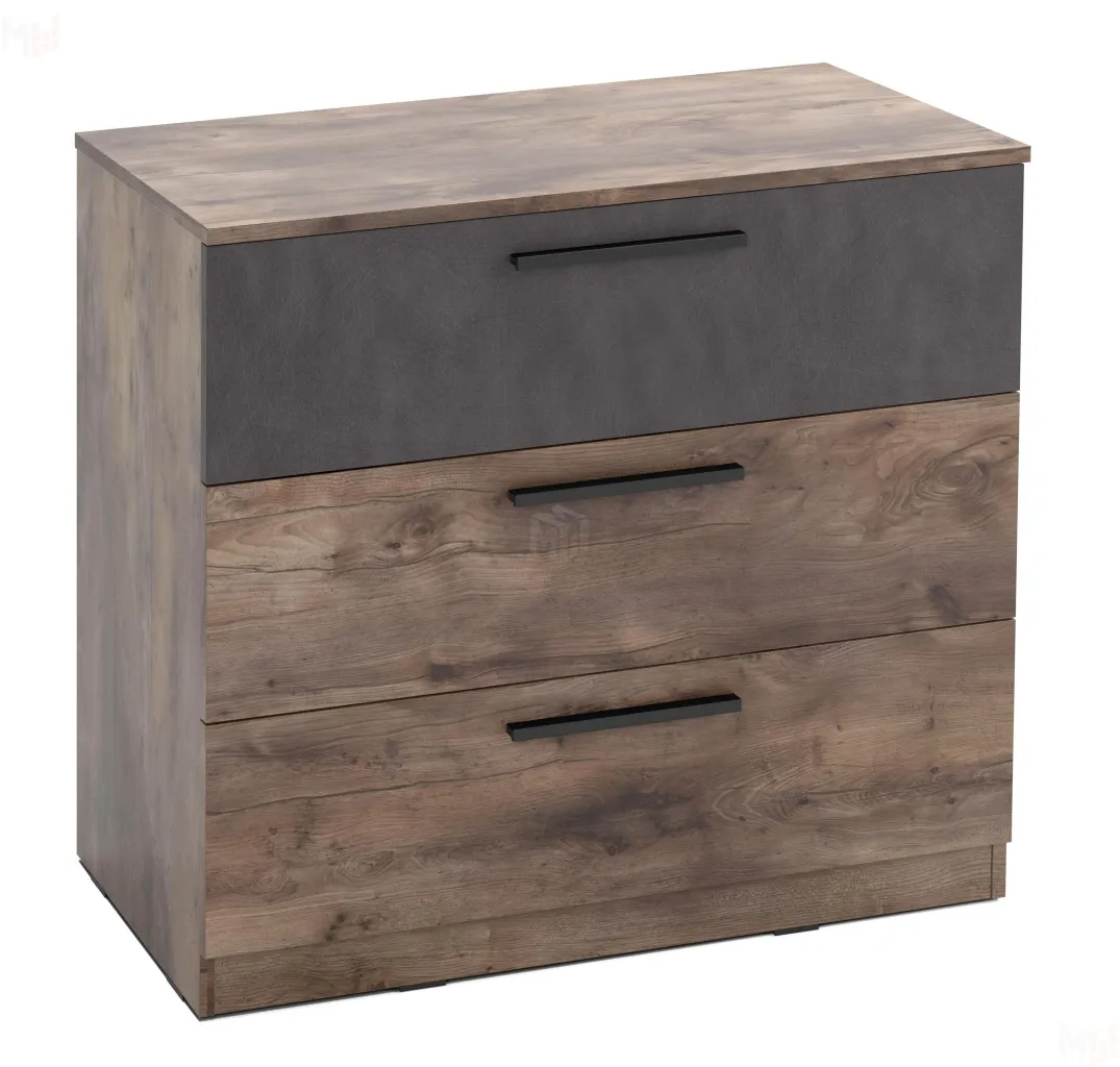Комод Глазго имеет три вместительных выдвижных ящика на шариковых направляющих, позволит обеспечить удобное хранение ваших любимых вещей. Материалы: ЛДСП, МДФ.