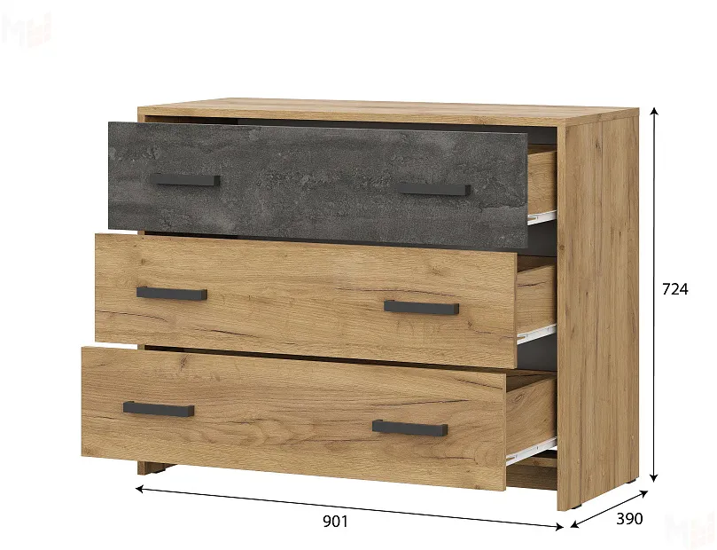 Комод 3 ящика МСП 1 Серия 2 Дуб Золотой/Камень Темный