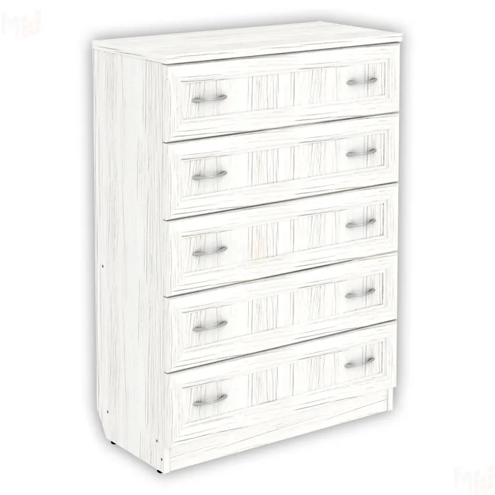 При небольших габаритах имеет большую высоту, чем обеспечивается его внушительная вместительность. Комод оснащен пятью достаточно большими выдвижными ящичками, в которых можно держать любые вещи.