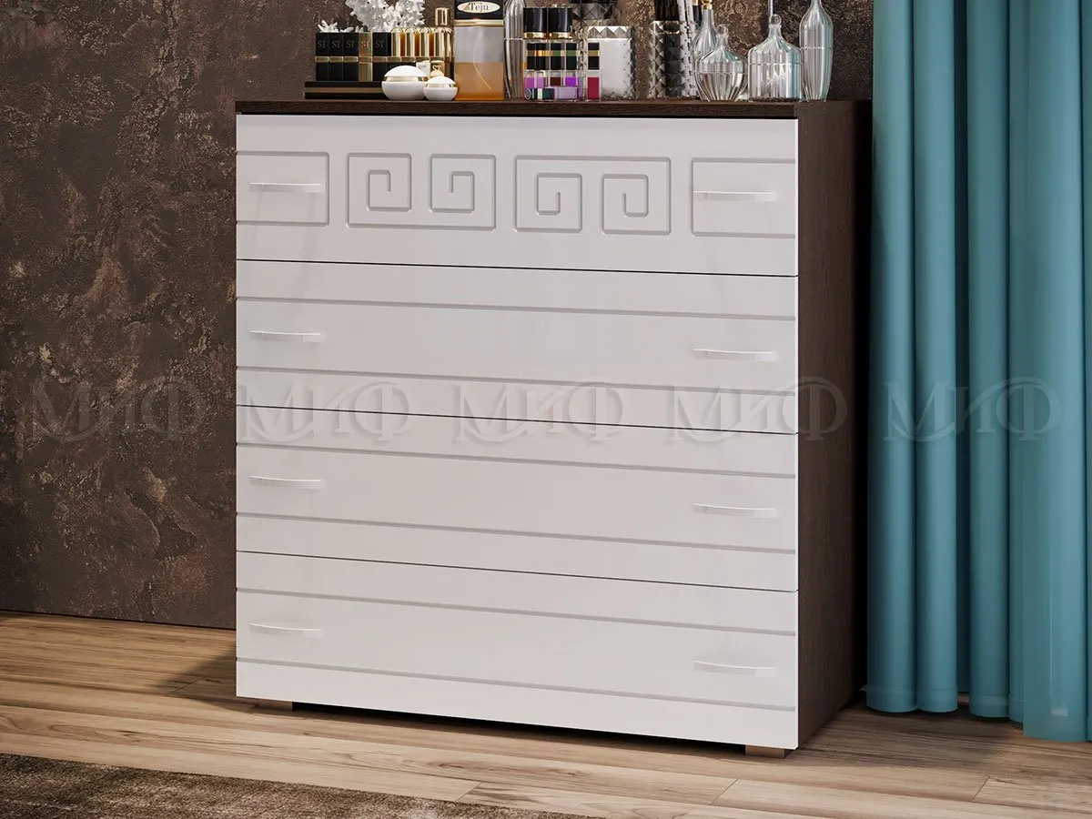 Корпус выполнен из ЛДСП венге, фасады МДФ белый глянец.