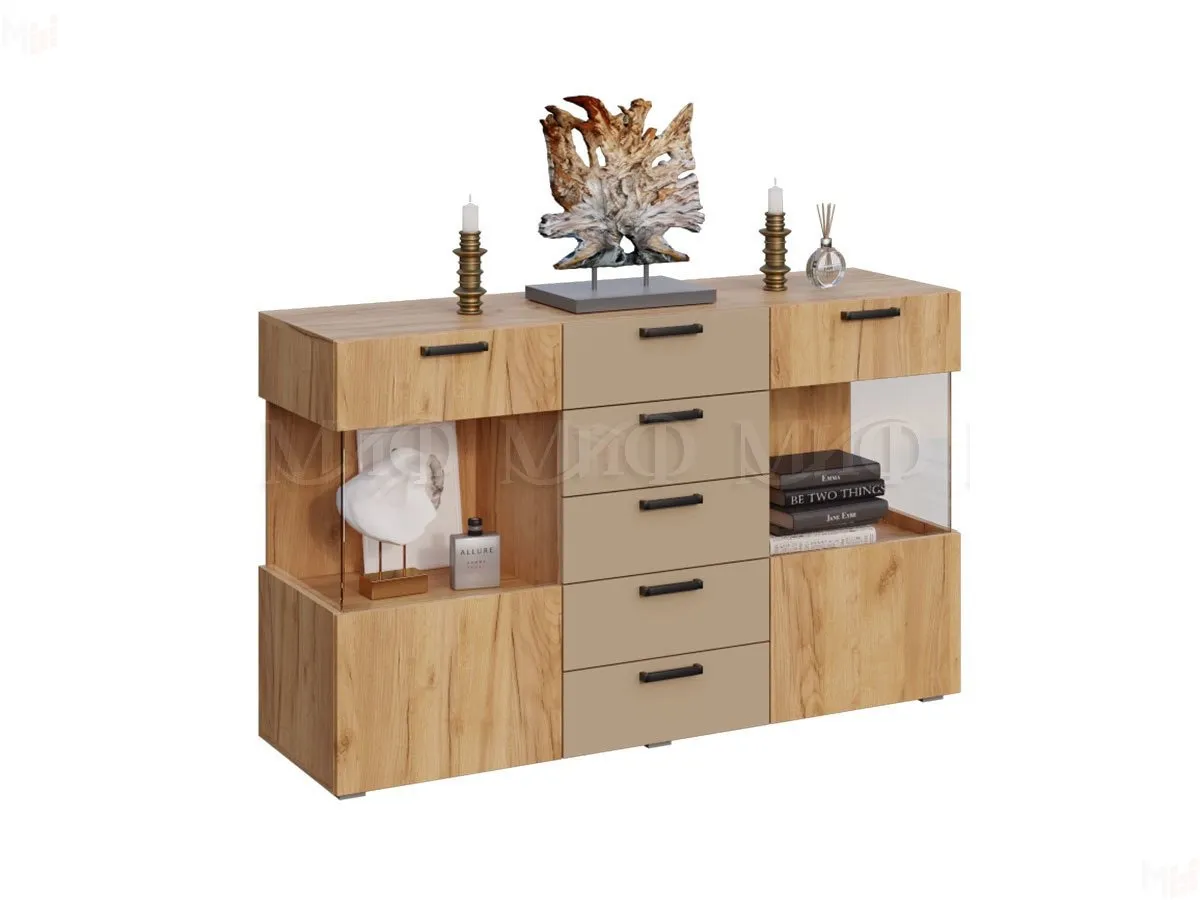 Каркас комода выполнен из ЛДСП Дуб золотой крафт, фасады ЛДСП Бежевый.