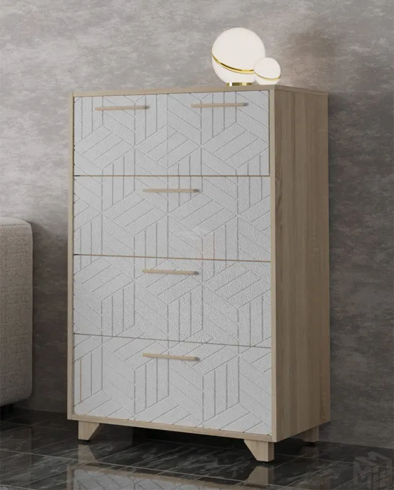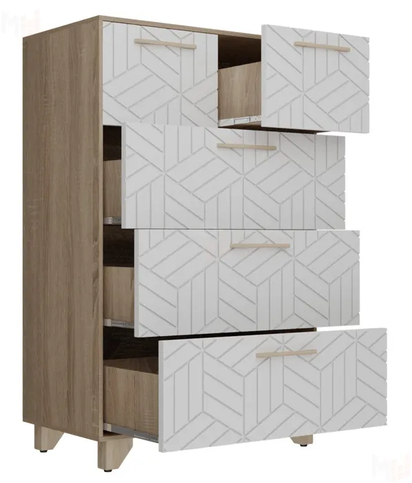 Комод Амстердам — вместительный и функциональный элемент как для спальни, так и гостиной. Модель оснащена тремя большими ящиками для хранения предметов одежды, текстиля и двумя маленькими — для личных вещей, документов, аксессуаров. Конструкцией предусмотрены шариковые направляющие полного выдвижения. Комод оборудован деревянными ручками из массива дуба. Регулируемые опоры, выполненные из массива дерева, позволяют нивелировать неровности напольного покрытия. Возможность сочетания цветов фасада и основы позволит найти подходящий вариант для интерьера. -
