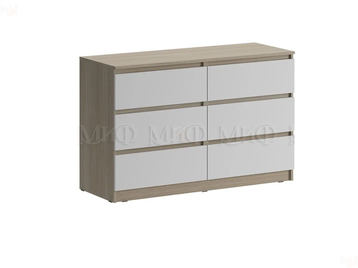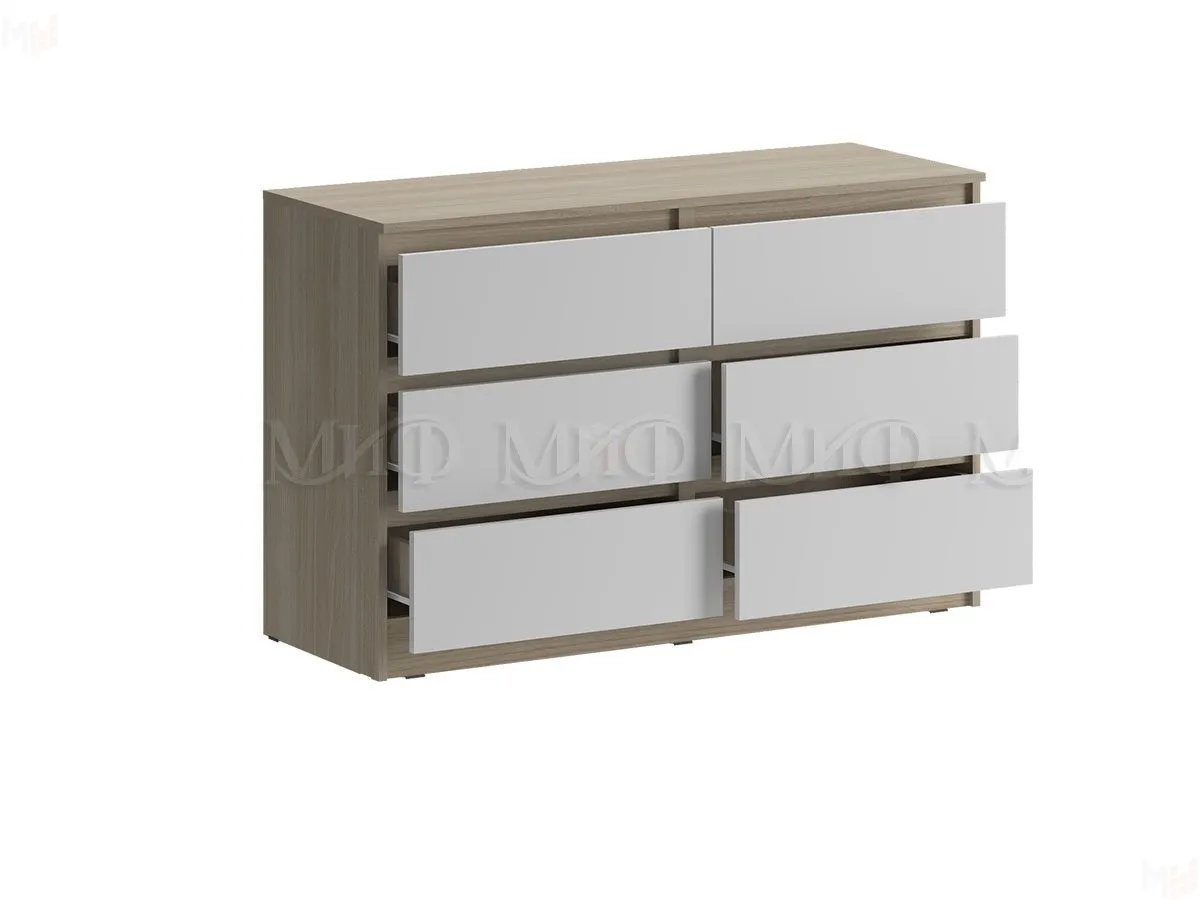 Комод выполнен из ЛДСП цвета сонома, фасады ЛДСП Белый глянец.