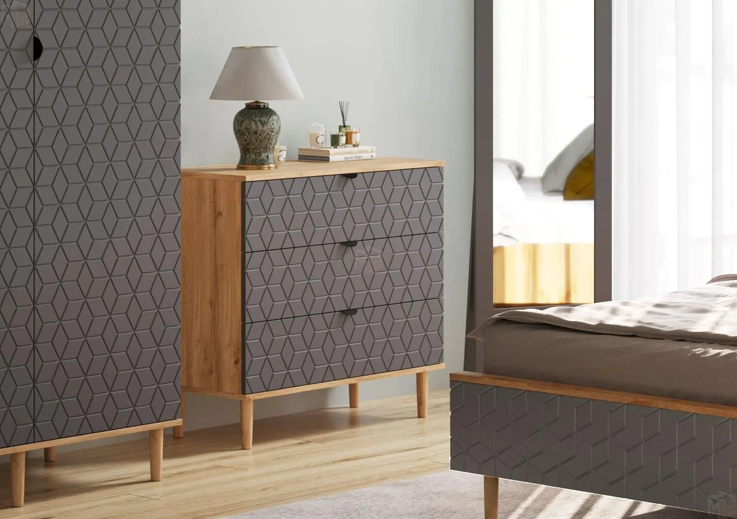 Серия Денвер - это изысканное и стильное решение для обустройства вашей спальни. Отличительной особенностью данной коллекции является изящная фрезеровка на фасадах в виде кубов, придающая им неповторимый шарм и элегантность.
