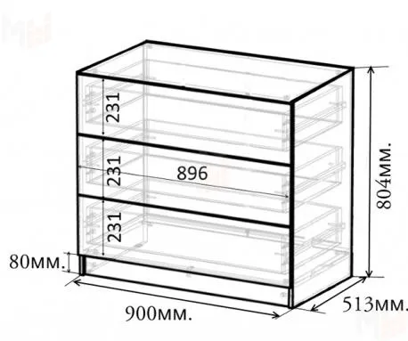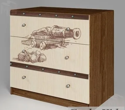 Наполнение конструкции - три выдвижных ящика (роликовые направляющие). Удобен и необходим в любой части комнаты. Комбинируется со всеми модулями серии Пираты на выбор.