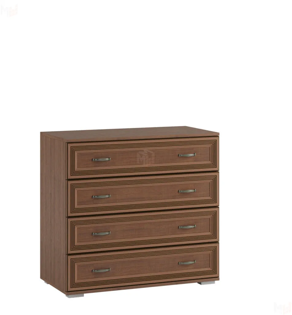 В широком комоде с четырьмя ящиками хватит места для хранения одежды и постельного белья.