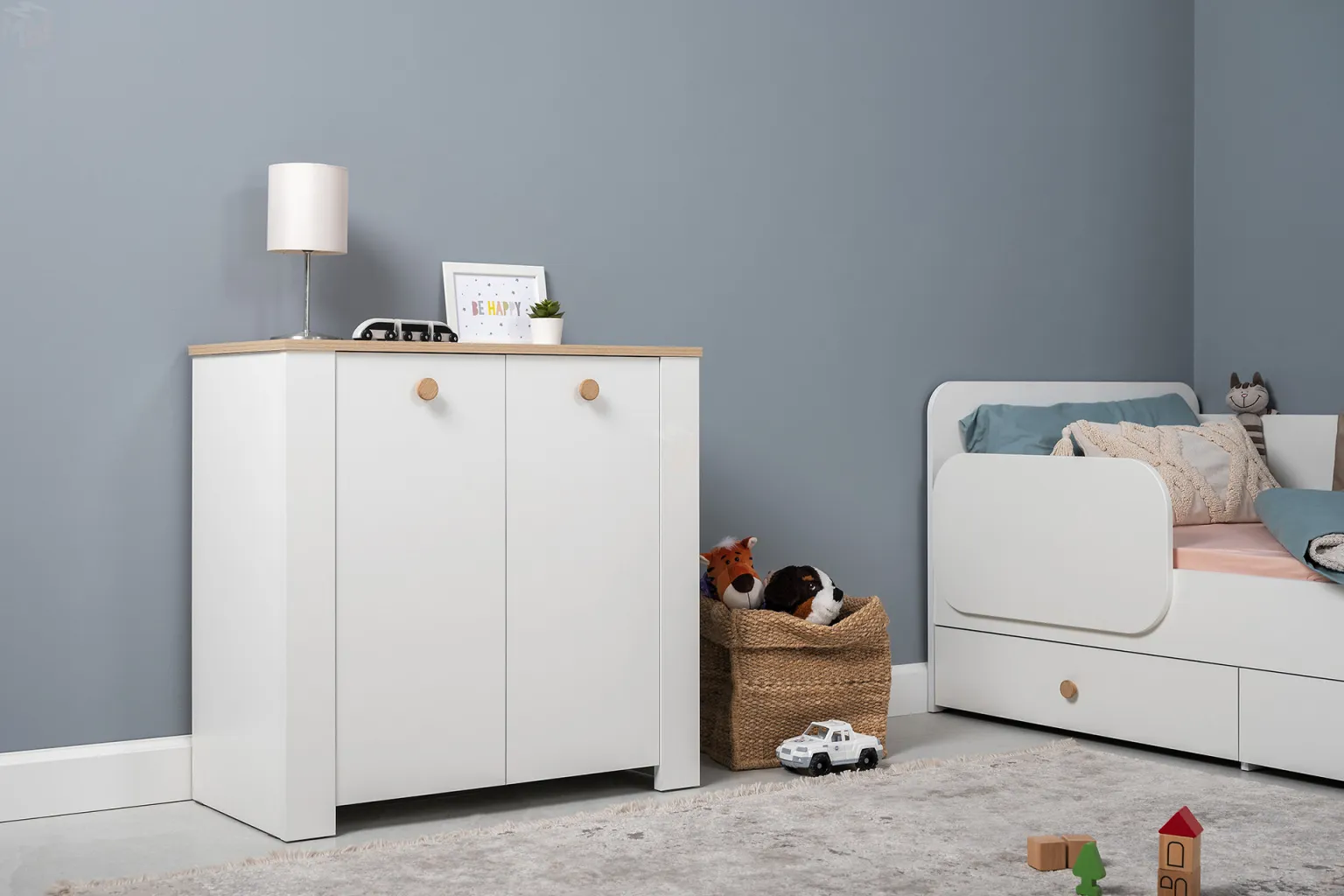 Комод 16.228.02 Джастин стильное и практичное решение для интерьера. Интересный дизайн в скандинавском стиле. Визитная карточка коллекции – лицевая фурнитура из натурального массива дуба. -