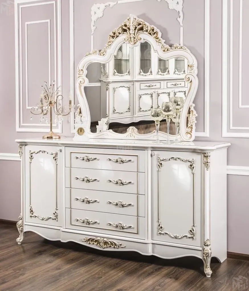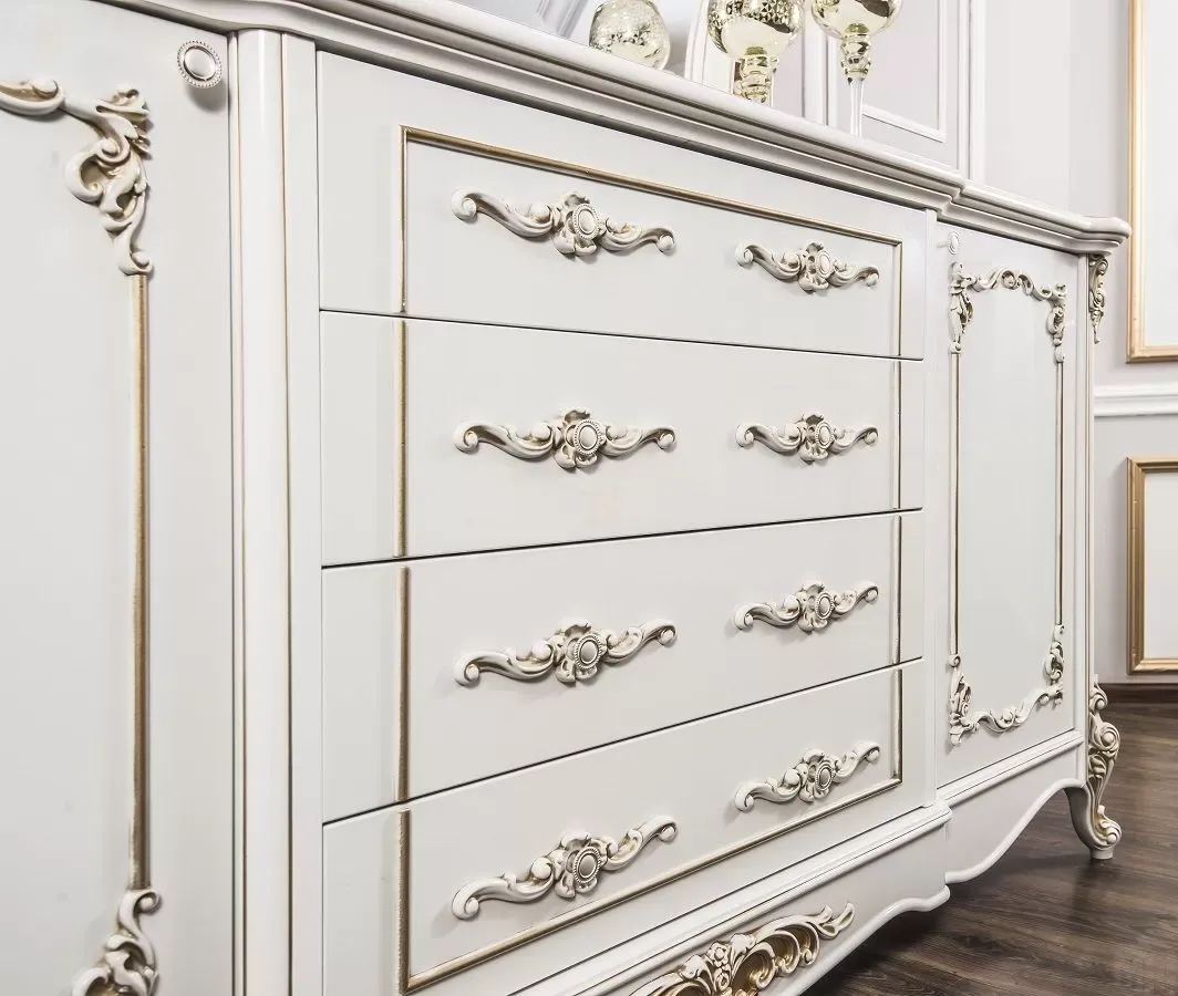Декоративные элементы, фасады, накладки покрыты золотой патиной и матовым лаком