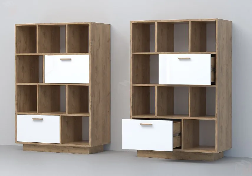 Комод оснащен двумя выдвижными ящиками на шариковых направляющих полного выдвижения.