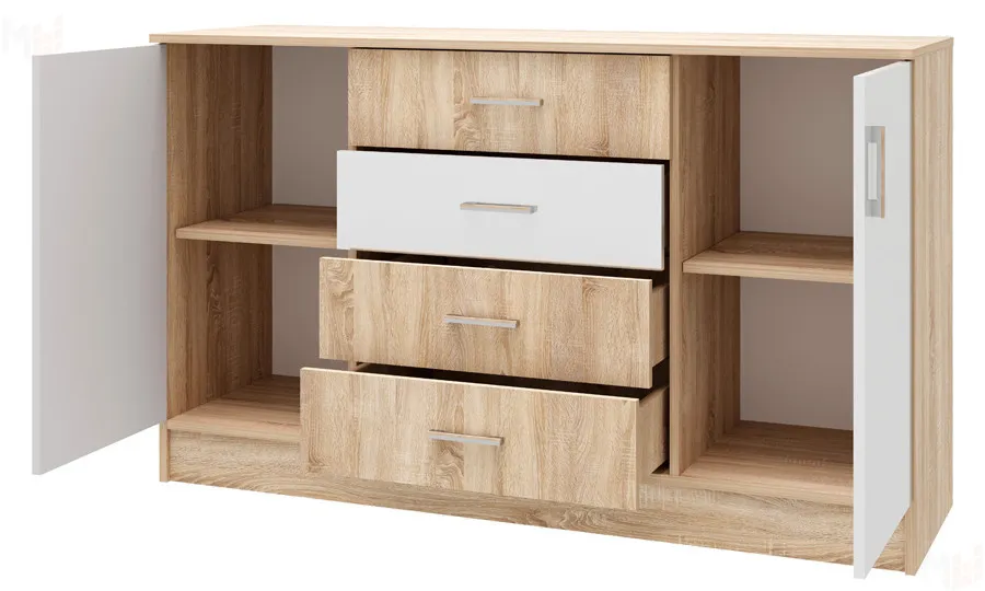 Комод К-1400 Беатрис Сонома-Белый глянец