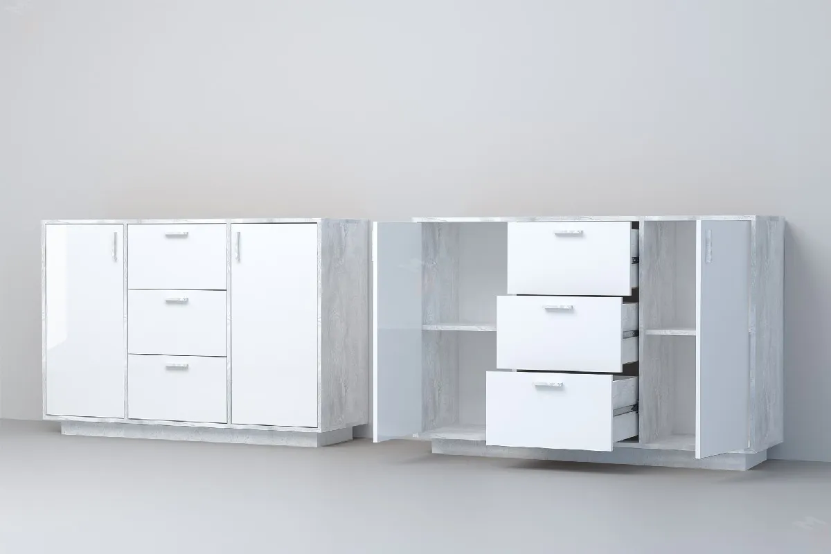 Комод К-2 ПД Эго Бетон Светлый/Белый Глянец