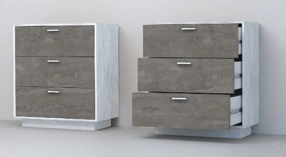 Комод К-3 ПД Эго Бетон Светлый/Камень Темный