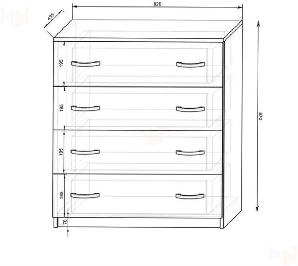 Наполнение конструкции - четыре ящика. Дополнительно верхнюю поверхность удобно использовать в виде подставки под любые предметы интерьера.
